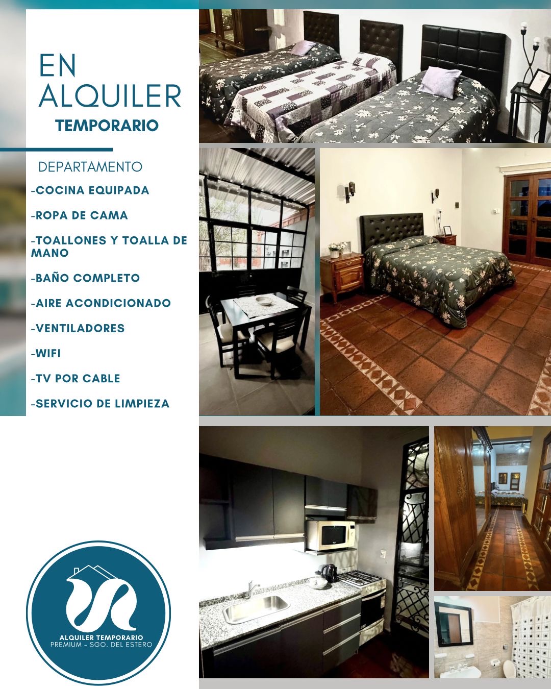 Ubicado a 3 cuadras de la plaza principal, a una cuadra de la Avenida con los principales bares y restaurantes de la ciudad, y a 2 cuadras del Parque. Completo departamento con todas las comodidades para gozar de una excelente estadía en Santiago del Estero. Ubicado en pleno centro de la ciudad. Con cochera a 20 mts del edificio. Apto para camioneta Se puede emitir Factura A (+ IVA)