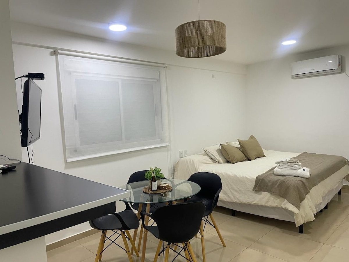 Te invitamos a disfrutar de una hermosa estadía en este modero monoambiente. Ideal para parejas o personas que viajan solas. Ubicado en pleno centro, ofrece la proximidad a los principales puntos turísticos y zonas de entretenimiento. A solo 8 minutos en auto del Estadio Único, 1 minuto a pie del Parque Aguirre, 2 minutos a pie de los bares de Avenida Roca y a 5 cuadras de la plaza principal. Ideal para quienes desean explorar la ciudad a pie y disfrutar de la gastronomía, bares y cultura local.