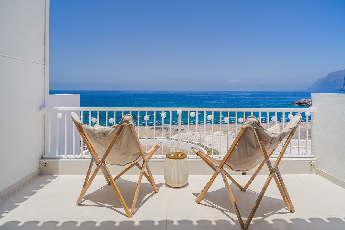 Zapraszamy do nowo wyremontowanego, eleganckiego apartamentu położonego nad samym oceanem w centrum uroczego miasteczka Los Gigantes. Nasz apartament został świeżo odnowiony w stylu Hampton, łączącym nadmorski klimat z nutą elegancji oraz dbałością o każdy detal. Niesamowitym atutem miejsca jest olbrzymi taras z zachwycającym widokiem na marinę oraz spektakularne klify Los Gigantes. To właśnie stąd można oglądać najpiękniejsze zachody słońca na całej wyspie, czując bryzę oceanu na twarzy