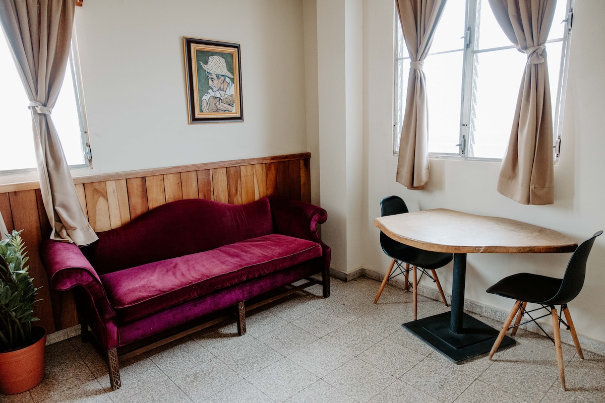 Departamento accesible en el centro de Santiago, ubicado a 300m de la terminal de Transporte y a poca distancia de supermercados y negocios. Con buena distribución del espacio, frescos e iluminados y con todos los servicios básicos. Los apartamentos brindan un balance armonioso en medio del va y ven característico del centro, perfecto para estadías de amigos, profesionales, parejas y familia.