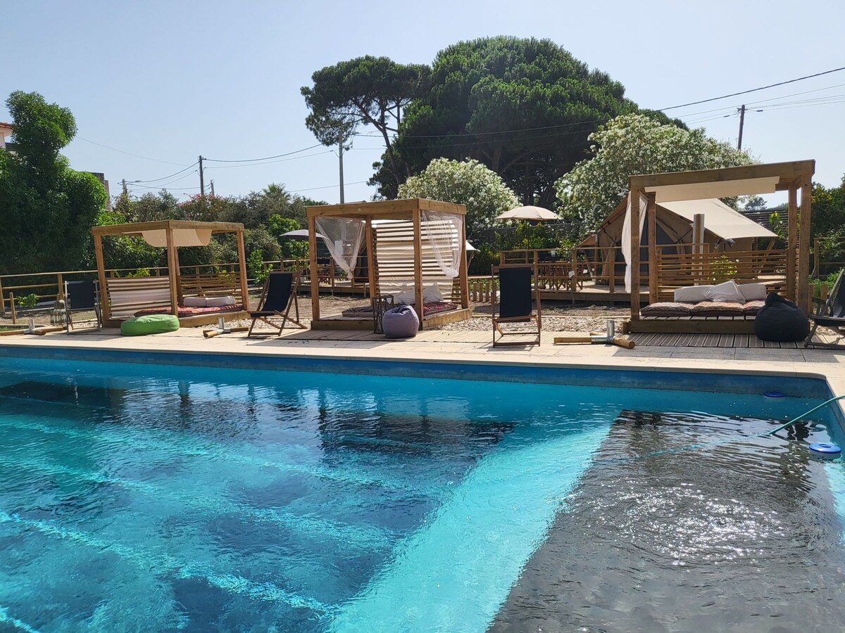Glamping junto à natureza com piscina fantástica