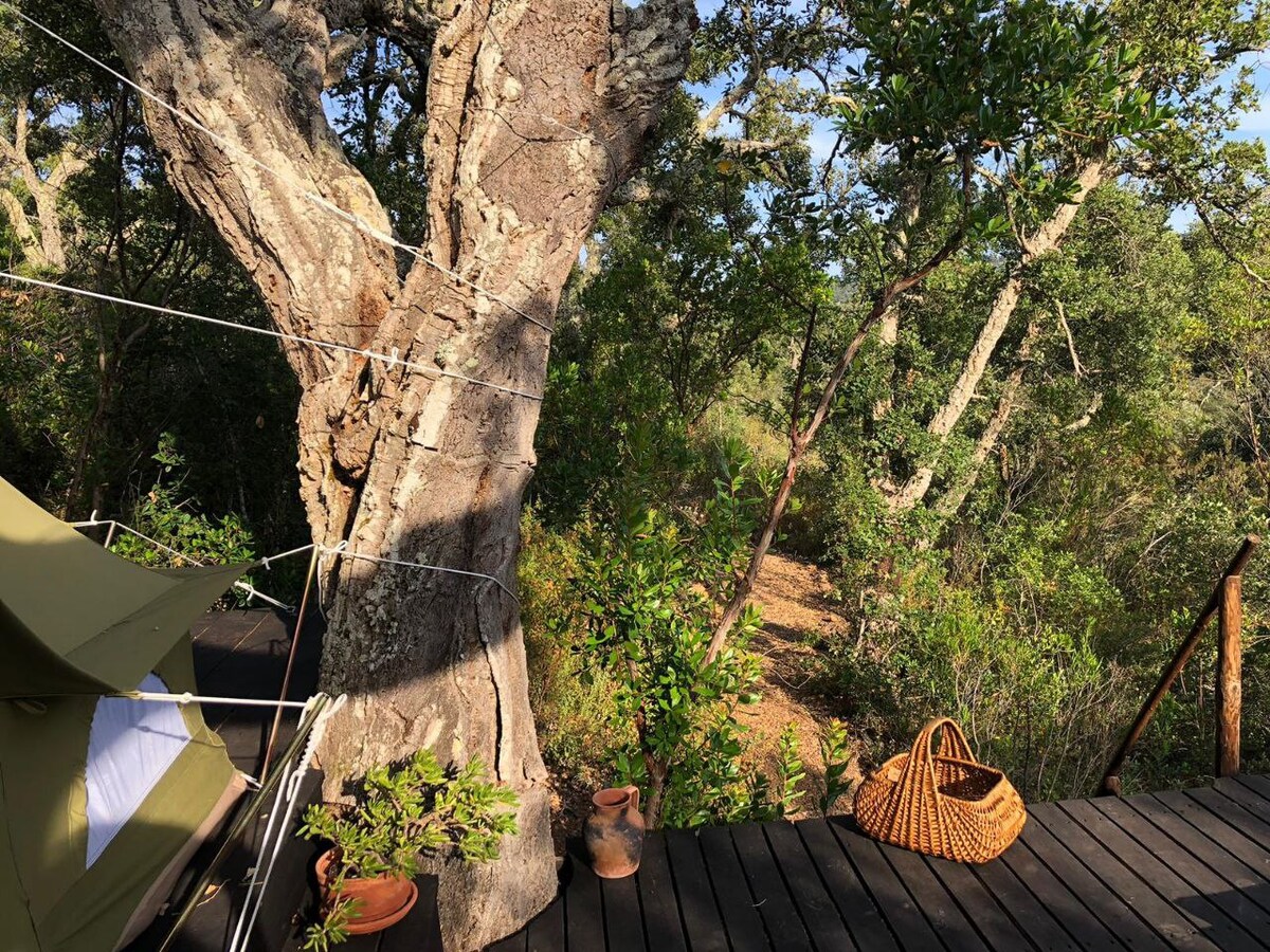 Comfy bell tent in a cork oaks forest