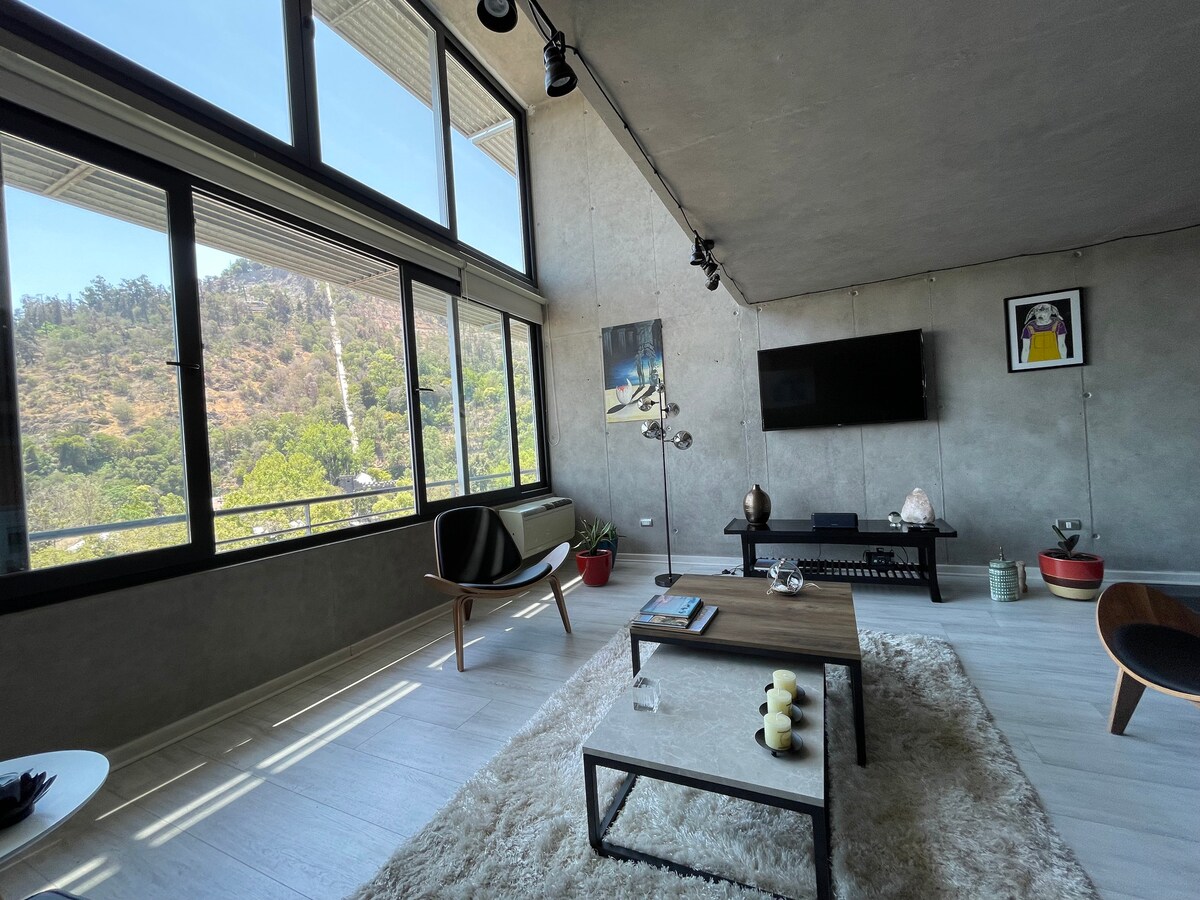 Espectacular Loft con increíble vista panorámica hacia el cerro san Cristóbal, icono de la ciudad de Santiago, situado en un sector estratégico de la ciudad, cercano a parques, museos, estaciones de metro, en pleno Barrio Bellavista, tradicional por su mezcla de bohemia y cultural con clubes nocturnos, bares y restaurantes. Un Loft con todas las comodidades que necesitas para una estadía inolvidable en el corazón de Santiago de Chile.