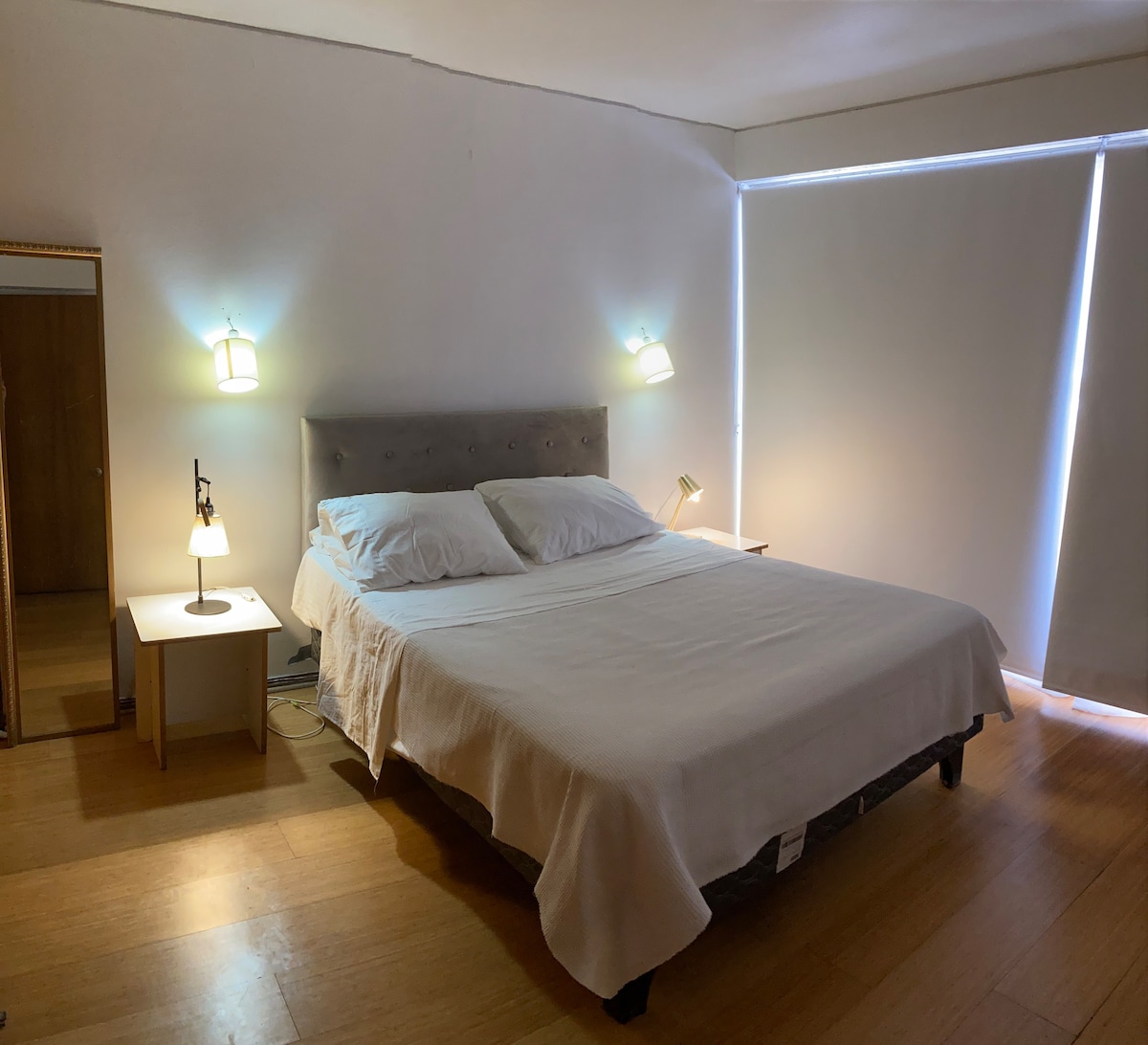 Habitación a pasos del metro Santa Lucía, con cama estilo europeo, colchón de buena calidad marca Rosen, sábanas de microfibra de 1800 hilos, exquisito cubre colchón Sognare. Te sentirás como en casa. Estaremos encantados de recibirte, y apoyarte en lo que necesites. Disfruta de este alojamiento tranquilo, cómodo y céntrico. Incluye desayuno. Hogar inclusivo. Les damos la más cordial bienvenida. Nota: Es una habitación privada en un departamento compartido de 3 habitaciones.