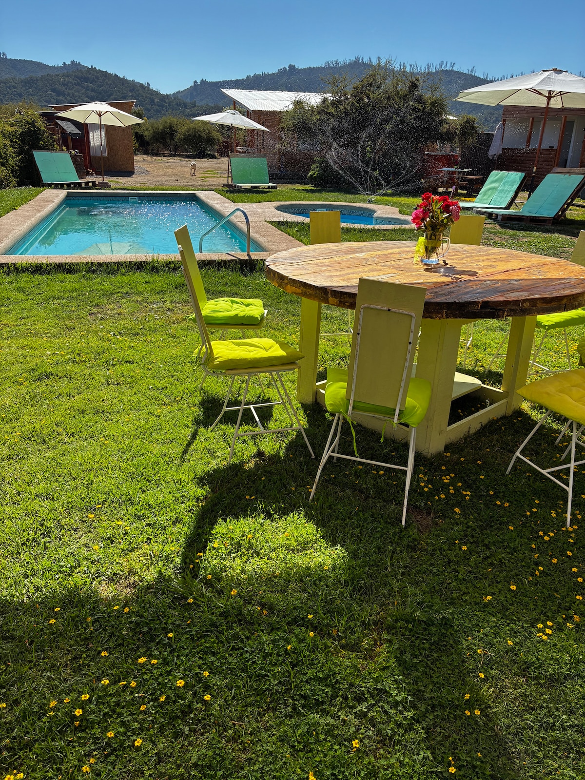 Domo muy cómodo para venir a desconectarse y relajarse (No se permite el uso de parlantes). Domo con aire acondicionado, salamandra, frigobar, baño completo c/agua caliente, Relájate en las noches estrelladas en un HOT TUB ( agua a 37°-39°) o refréscate en nuestra piscina, en glamping_domo_chile podrás caminar por los hermosos senderos de la zona. Recepción tabla de picoteo, desayunos en las mañanas . Todo incluido en el precio. Servicio de almuerzo a la carta.