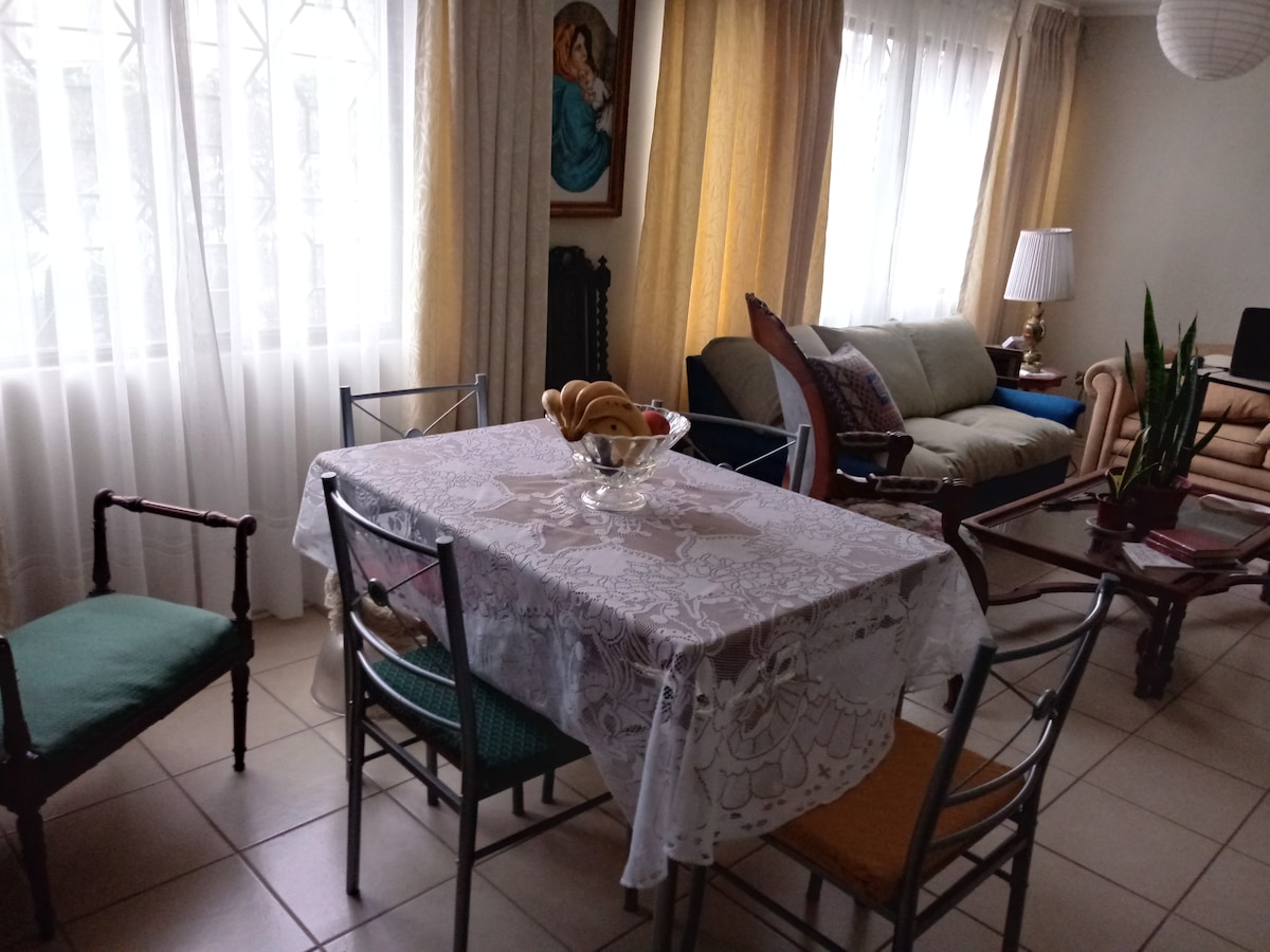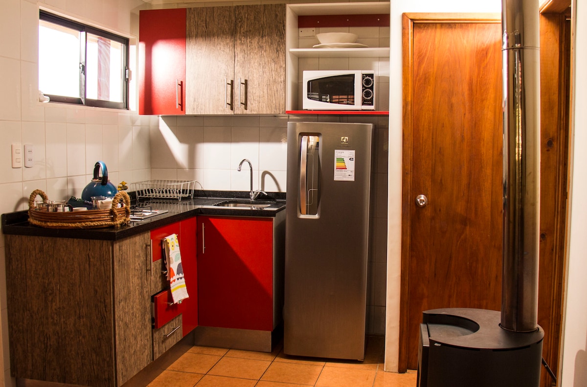 Acogedora casita recién renovada, con terraza y jardín privado. Ubicada en Los Cerrillos, en bus son máximo 30 minutos hasta Estación Central y 45 minutos al Centro. En metro o vehículo fuera de horas peak es 10 min. más rápido. a 15 minutos del Aeropuerto en vehículo privado o taxi y accesible a las autopistas rápidas en dirección a la costa. Muy fácil para escapadas por el día a la playa. En invierno a 1:30 de pistas de esquiar (El Colorado)