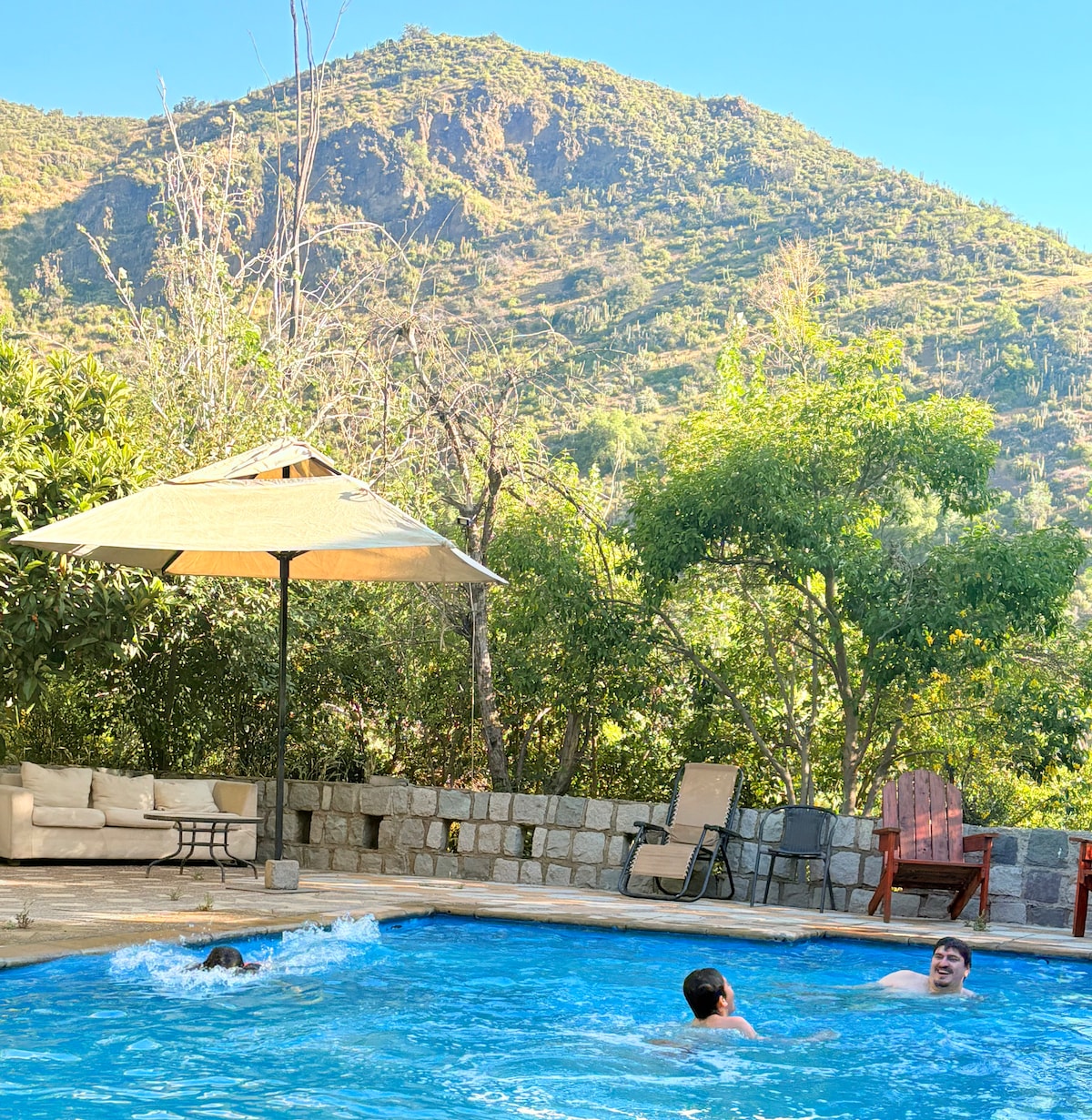 Private Bungalow (Cabin) with Hot Tub 24/7 in Cajón del Maipo,with river access.Mountain retreat ideal for 2 to 6 guests. Features 2 bedrooms and 2 bathrooms, three beds (2 queen beds + 1 double bed), a living area with wood stove, open-plan kitchen and sofa bed.Enjoy a natural meltwater pool, BBQ area, game room (pool table, ping-pong and foosball), fireplace, board games, large gardens and outdoor dining terrace. Forest and sun baths. Therapeutic massages available. Nature, mountains and rest.