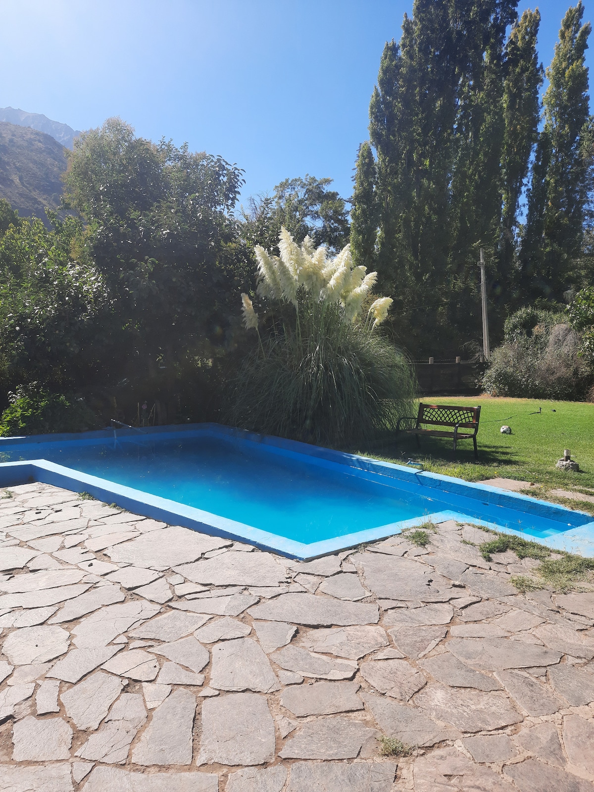 Hermoso Domo Rústico ,rodeado de Naturaleza, independiente a la casa principal., tiene 1 cama Matrimonial y 1 cama nido. Buena Ubicación para Acceder a distintos puntos de atracción turística. , Termas, lagunas, Embalse del Yeso etc..., Especial para Relajarte y Renovarte, Piscina, Quincho, Fogón ,Hot Tube. Juegos Infantiles