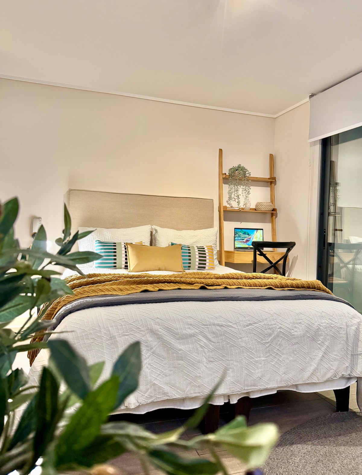 🌿 Disfruta una estadía con estilo en el corazón de Santiago. 🏡 Check-in automático 24/7 ✨ Refugio nórdico-boho con luz natural y detalles de madera. 🛏 Cama king de ensueño, sofá cama y balcón ideal para un café o vino al atardecer. ❄️ Aire acondicionado, Wi-Fi rápido, cocina equipada y lavadora privada. 🚇 A pasos del metro Santa Lucía, cafés, restaurantes y parques. 🅿️ Estacionamiento sujeto a disponibilidad. Cada detalle fue pensado para que llegues, te relajes… y respires.