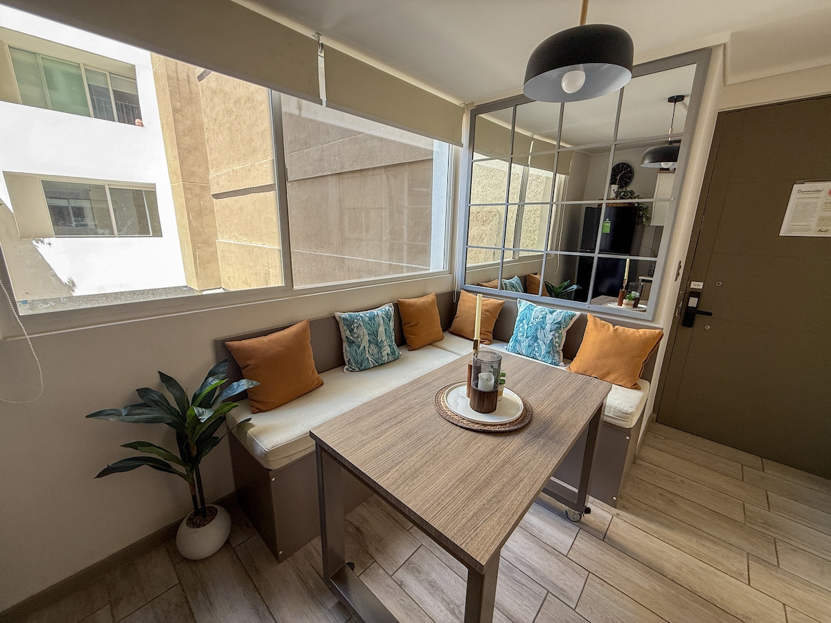 ¿Buscas estilo, descanso y buena ubicación? Este cálido y luminoso estudio tiene todo para una estadía inolvidable en Santiago. Está full equipado para 2 personas: ♨️ Aire acondicionado 🍴 Cocina full equipada 💻 Excelente Wifi y Zona de trabajo ✨ Decoración boutique 🥩 Parrilla a gas 🏓 Mesa de ping pong 🗻 Vista a la Cordillera 📚 Libros y juegos de mesa ¡Tenemos una guía local con recomendaciones para que disfruten al máximo de esta increíble ciudad!