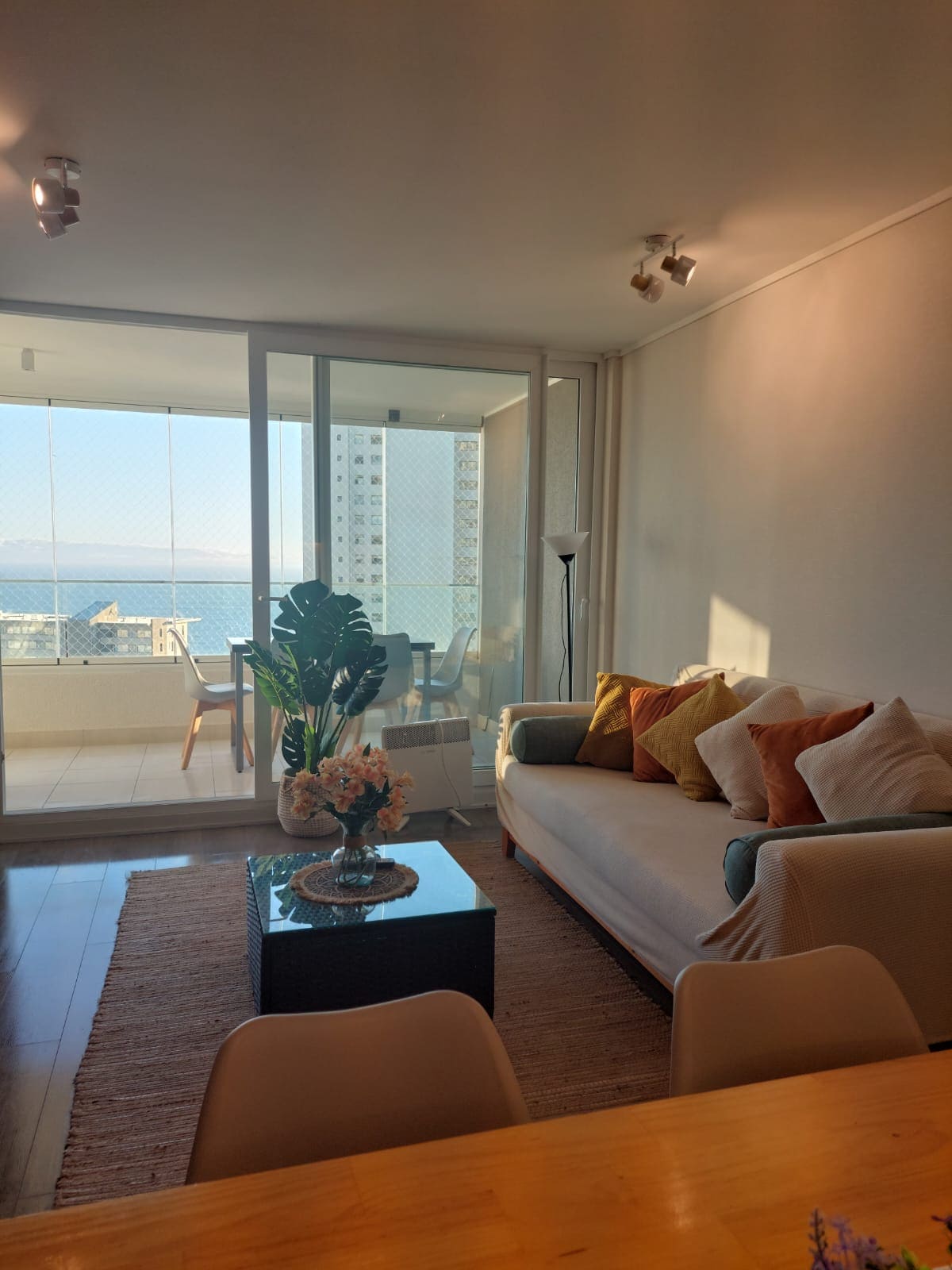 Espectacular departamento en Concón con vista al mar y piscina temperada. El departamento cuenta con áreas verdes y juegos infantiles, piscina al aire libre, amplia terraza privada con vista al Océano Pacífico. Hay servicio de sauna (de pago). Se encuentra a pocos pasos de las Dunas de Concón, supermercados, restaurantes, bares y del parque Costa de Montemar. A minutos caminando a playa Los Lilenes. Se cuenta con Wifi y Smart TV en el dormitorio, estacionamiento privado.
