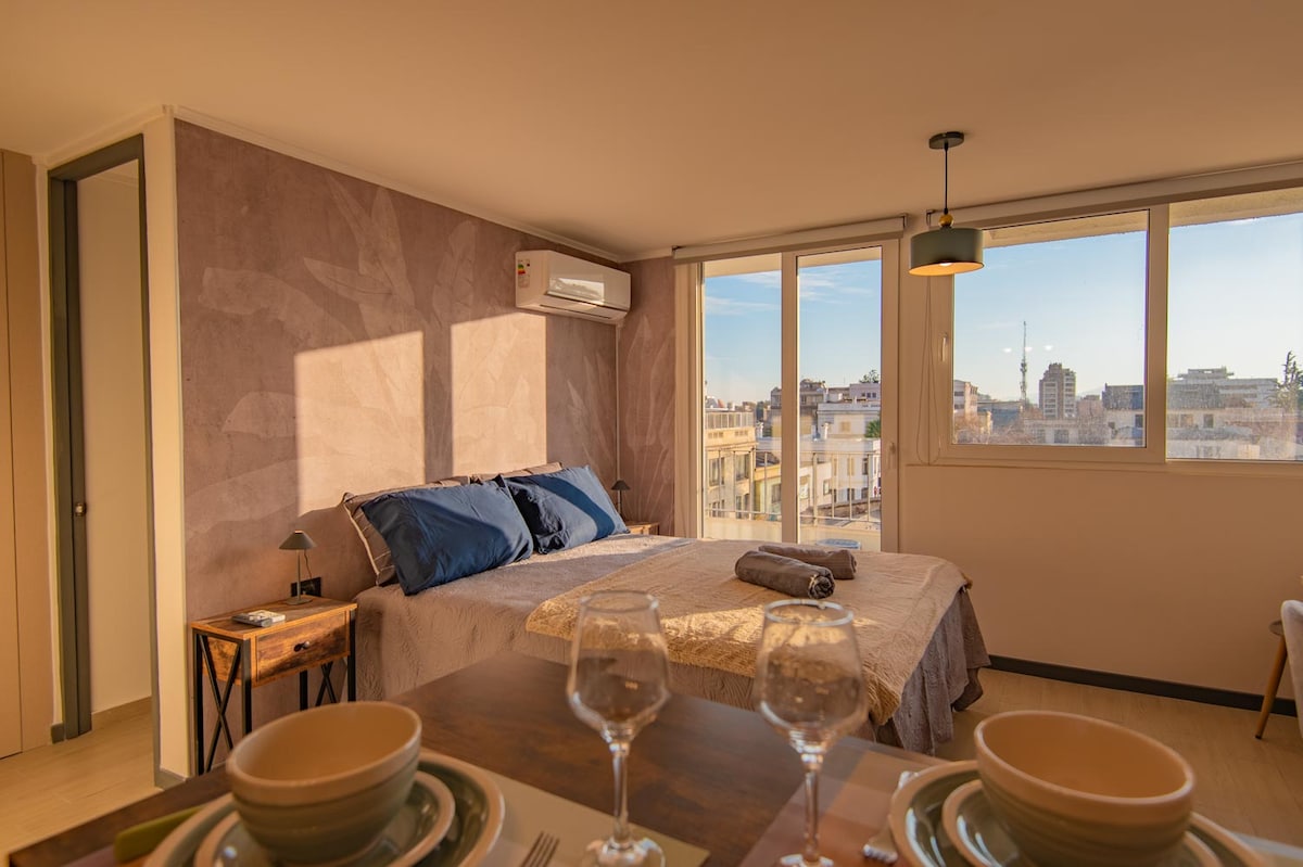 This apartment is ideal for relaxing and enjoying the city. It's centrally located, between the Santiago Centro and Providencia districts, one of the best locations in the city. It offers beautiful views of San Cristóbal Hill and the Sky Costanera. It's just a 3-minute walk from the metro and buses. Includes: Free Wi-Fi, a fully equipped kitchen, sheets and towels included, a large bed with a large Smart TV. Self-service entrance with a key, allowing you to arrive at any time.