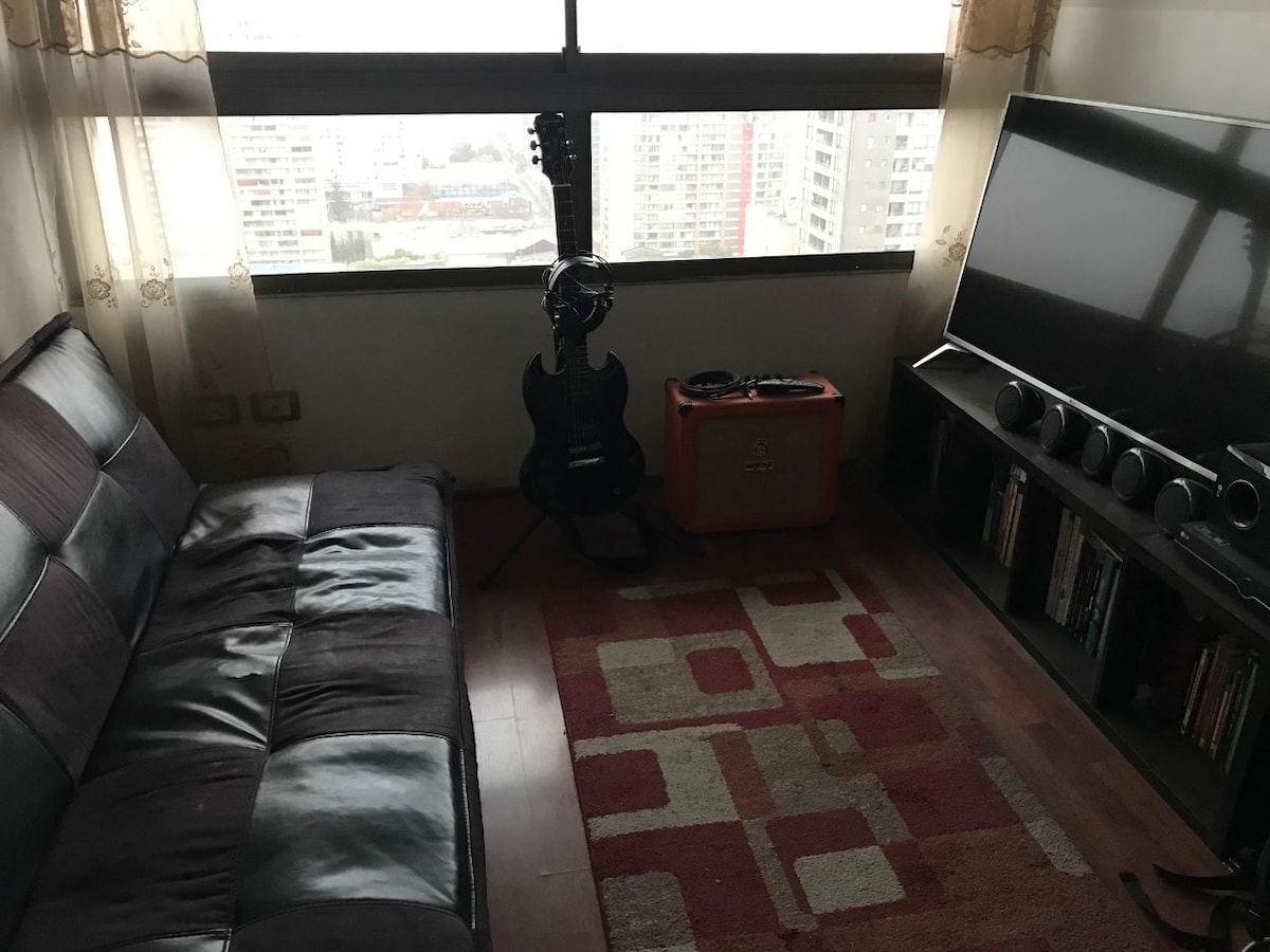 This apartment is ideal for relaxing and enjoying the city. It's centrally located, between the Santiago Centro and Providencia districts, one of the best locations in the city. It offers beautiful views of San Cristóbal Hill and the Sky Costanera. It's just a 3-minute walk from the metro and buses. Includes: Free Wi-Fi, a fully equipped kitchen, sheets and towels included, a large bed with a large Smart TV. Self-service entrance with a key, allowing you to arrive at any time.