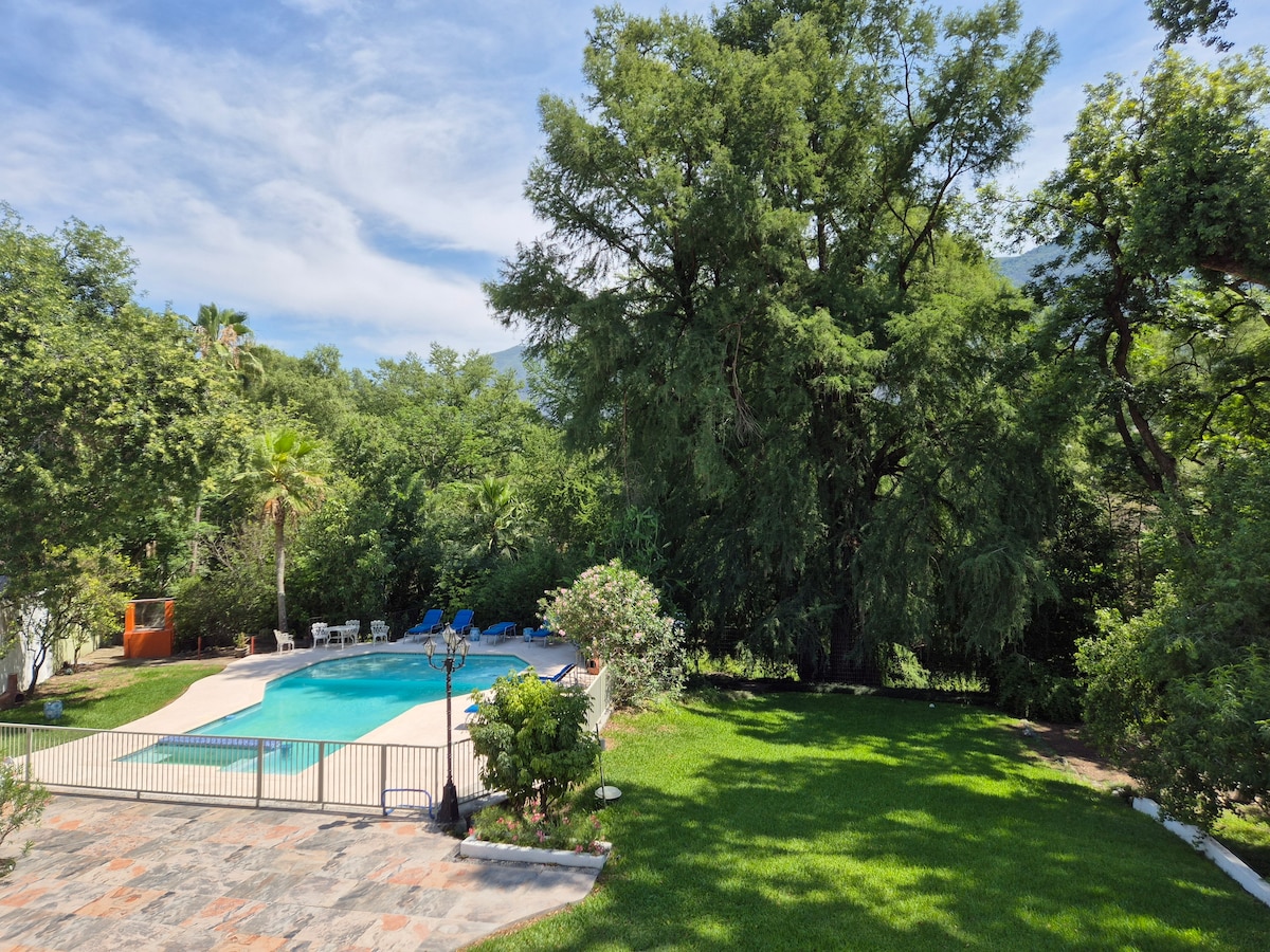 La Casita del Encino es un lugar muy arbolado y con una hermosa alberca, sólo a 15 minutos de Monterrey, a 6 minutos de la plaza principal de Santiago, Nuevo León, y a 10 minutos de la Presa de la Boca. Un espacio para rencontrarte y disfrutarte. Conéctate a la vida a través de estos arboles longevos. A partir de 2 noches podemos otorgar una oferta especial, pregunta por ella.