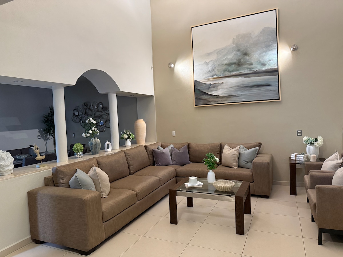 Estilo industrial (climatizada) Ideal para disfrutar en familiar, salir de la rutina, vista espectacular a las montañas, amplia terraza y bellísima alberca sin calefacción, segura. no reuniones masiva ni invitados, niños pequeños y bebés cuentan como extras.. lo usan seguido para GEATTING READY asador, portón eléctrico, totalmente bardeada, malla electrificada, subes tu vehículo a la altura de la terraza y así el acceso a discapacitados. Máx 2 mascotas(reglamento)y 400 mts de terracería