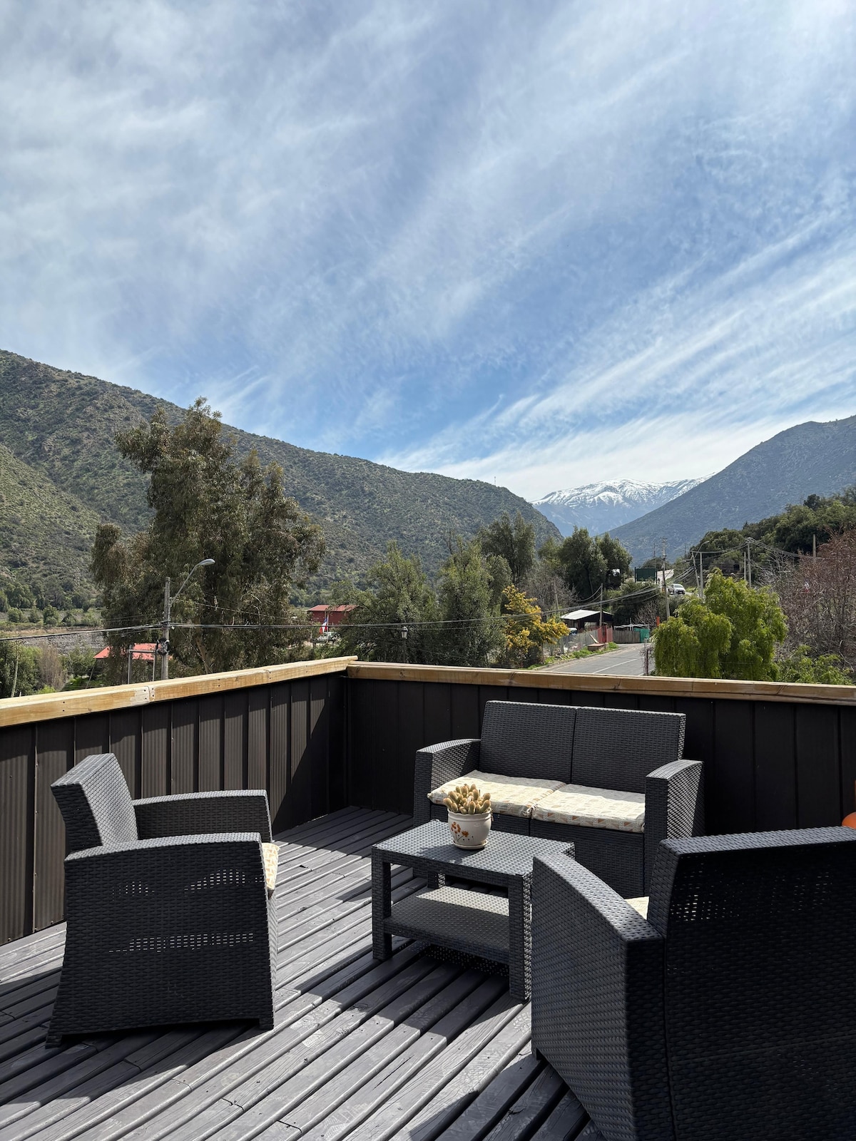 ¡Escápate a un rincón moderno y único en el Cajón del Maipo! Alojamiento nuevo, moderno e independiente con terraza y hermosa vista a la montaña. Ubicado en zona urbana, a 15 min caminando de la Plaza de San José de Maipo y a 25 min en auto de Puente Alto. Cercano a restaurantes, comercios y actividades como rafting o trekking. Perfecto para parejas y aventureros qué desean llegar a descansar, desconectarse y disfrutar del entorno natural con total comodidad.