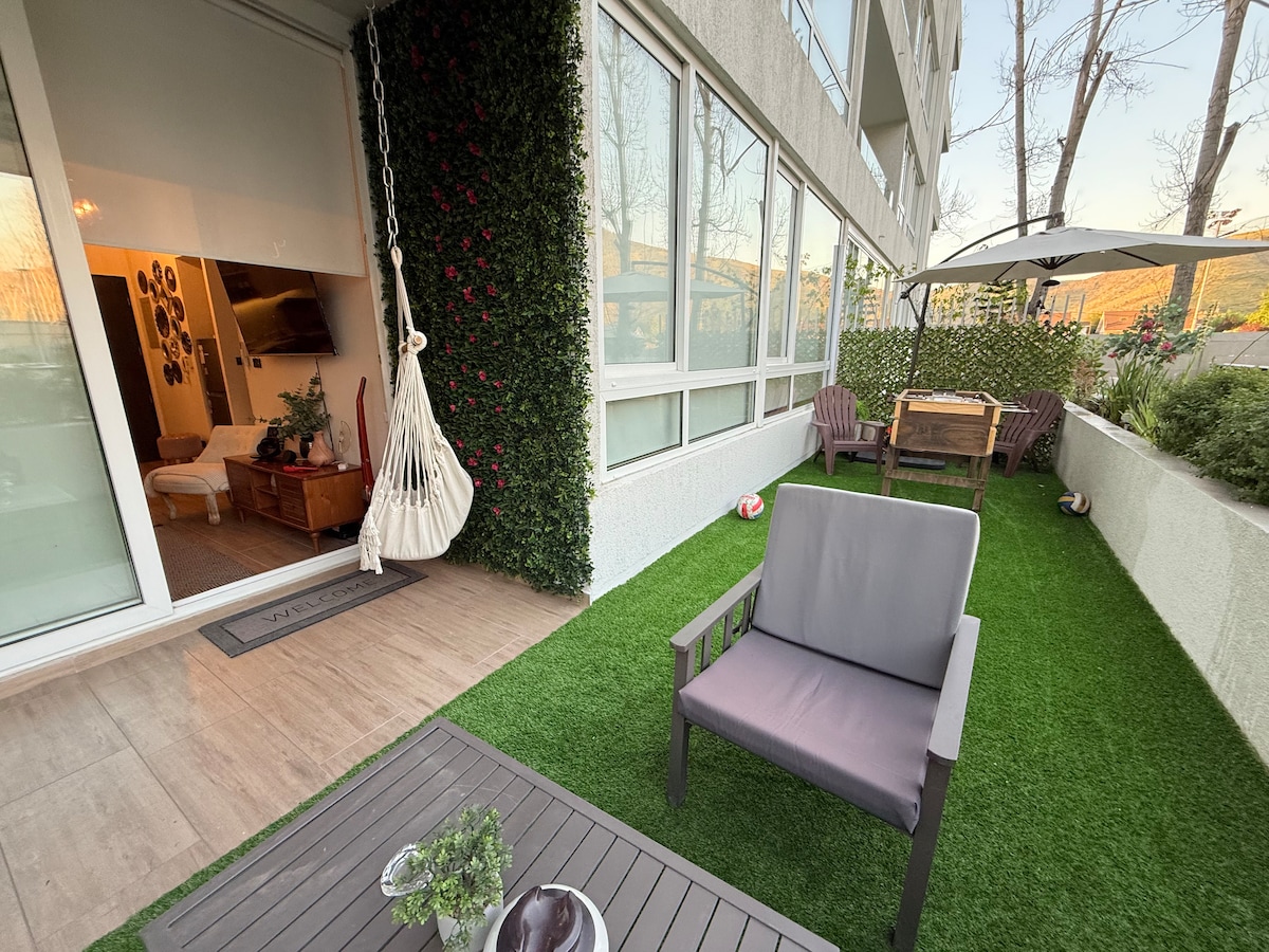 Bienvenido a tu hogar inteligente en Huechuraba (con Alexa). Moderno depto de 2 habitaciones en un condominio de alto nivel cuenta con tecnología avanzada, seguridad 24h y comodidades premium. Disfruta de una cocina totalmente equipada, patio privado, terraza con parrilla a gas y TV en todos los ambientes. y acceso a piscina, gimnasio, co-work y más. Estacionamiento techado. En Av. Pedro Fontova, cerca de bares, restaurantes y Malls como Costanera Center, Parque Arauco, Plaza Norte, Outlets.
