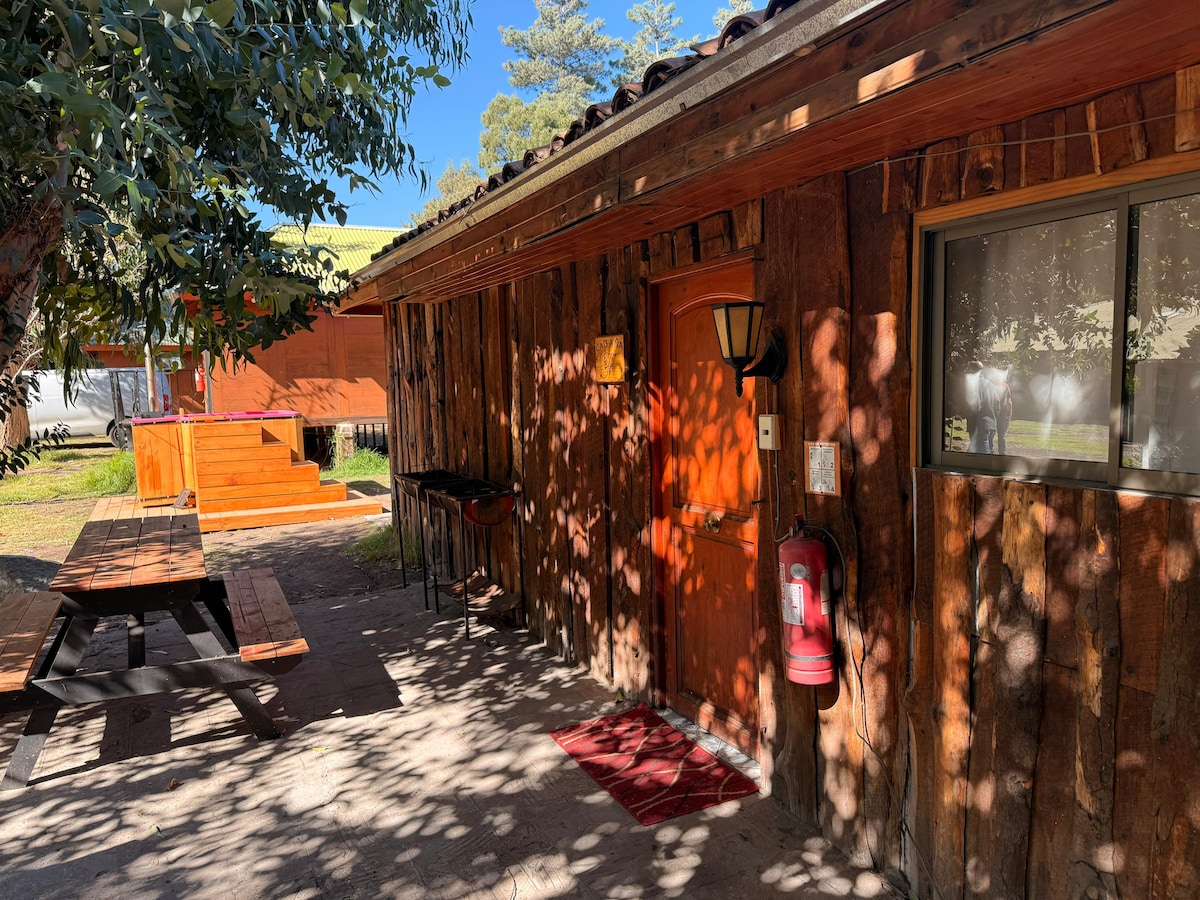 Hermosa cabaña edificada entre un pequeño bosque que da tranquilidad y frescura para deleitarse de una barbacoa en su terraza o un relajante baño en tinaja con agua caliente. Y para esos días calurosos podrá refrescarse en la piscina. Además dentro del recinto podrá disfrutar de sus miradores con fascinantes vistas al valle y registrar atardeceres y montañas nevadas. *Tinaja y piscina de uso exclusivo de los huéspedes. *Estacionamiento gratuito. *Tinaja no incluida en el valor.