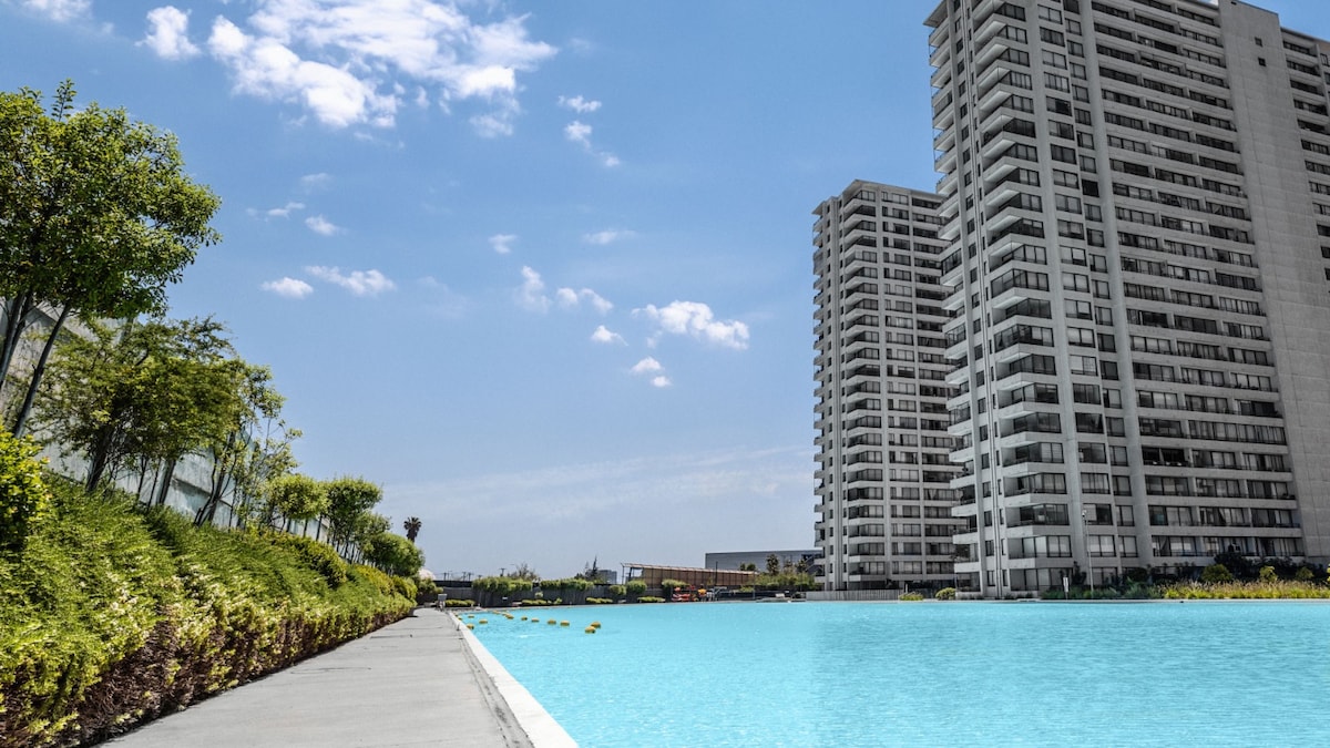 Condominio privado estilo resort en el corazón de Santiago con excelente vista, con una laguna artificial navegable para kayak, parques infantiles, con arena de playa, piscina y amplias áreas verdes, diseñadas para el confort y el disfrute de toda la familia. A solo pasos de la estación de Metro Carlos Valdovino Linea 5, ofrece fácil acceso a lugares turísticos, centros comerciales, supermercados y destacados recintos de eventos como el Movistar Arena, Estadio Nacional y Estadio Monumental.