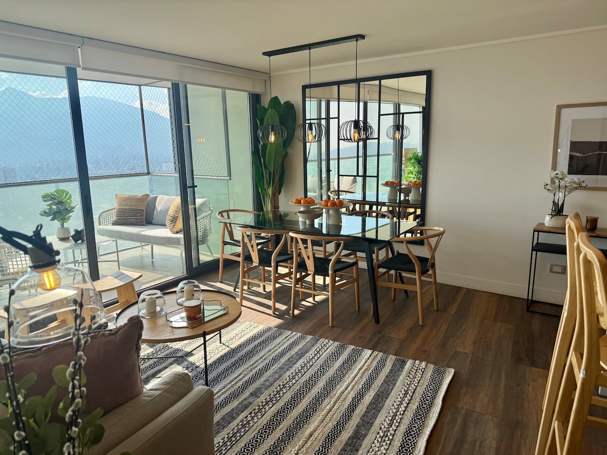 Amplio y exquisito departamento de 110 mts. más terraza! Living, comedor y cocina integrada full equipada: refrigerador side by side, horno eléctrico, microondas, cocina vitrocerámica, campana, lavavajillas. lavadora / secadora. La terraza cuenta con parrilla a gas empotrada. El interior es amplio y muy cómodo. La decoración es nórdica y relajada. El baño principal tiene ducha doble y hay otro baño completo para visitas. Tiene estacionamiento subterráneo y estacionamiento de visitas