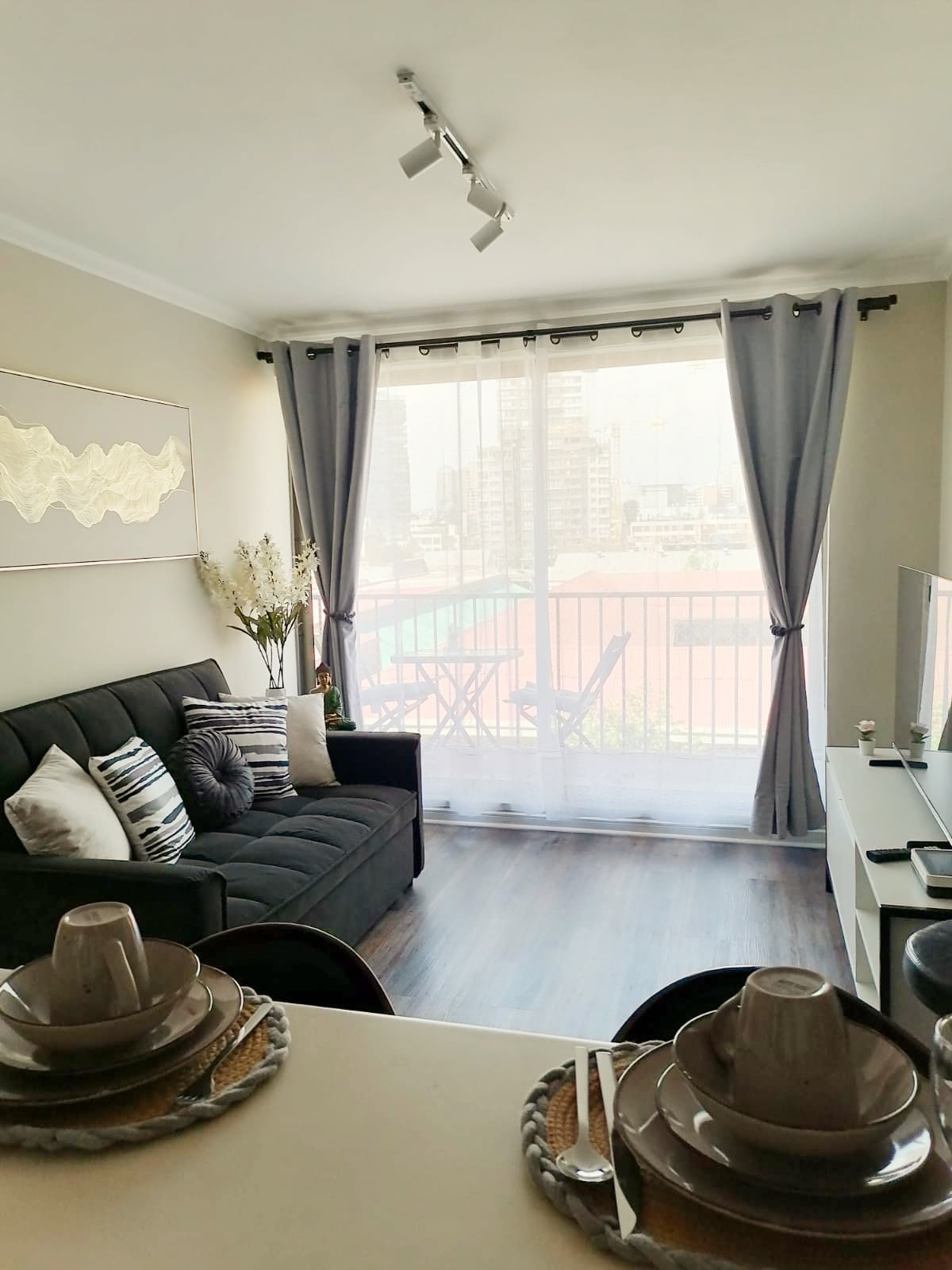 Moderno y acogedor departamento con aire acondicionado en el corazón de Santiago. A pasos del metro y del Centro Histórico, rodeado de museos, mercados y restaurantes. Cama king, cocina equipada, balcón y wifi rápido, ideal para viajes o estadías largas. Edificio seguro con conserje 24/7. Atención personalizada, check-in flexible y recomendaciones locales para que disfrutes la ciudad como un residente, con comodidad y tranquilidad.