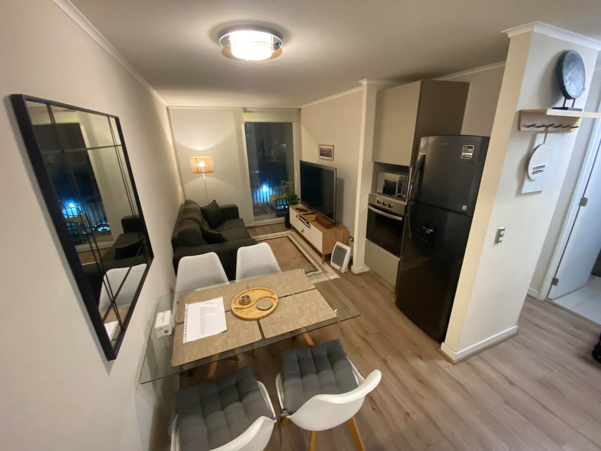 Disfruta de la sencillez de este alojamiento tranquilo y céntrico, con fácil acceso a transporte público y líneas de metro. Espacio moderno y acogedor, con cama cómoda para un descanso reparador. Cuenta con WiFi de alta velocidad, cocina totalmente equipada y Smart TV. Cercano a supermercados, mall, restaurantes variados, Barrio Italia y Estadio Nacional.