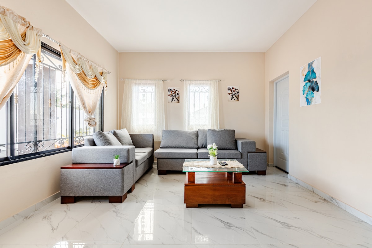 Hermoso apartamento para relajarse en familia con piscina y con seguridad 24/7 a solo 10 minutos del aeropuerto del Cibao. Conveniente locación cerca de todo en Santiago incluye el monumento, restaurantes, supermercado y mas. A menos de una hora de la playa de Puerto Plata. Relax with the whole family at this peaceful place to stay.