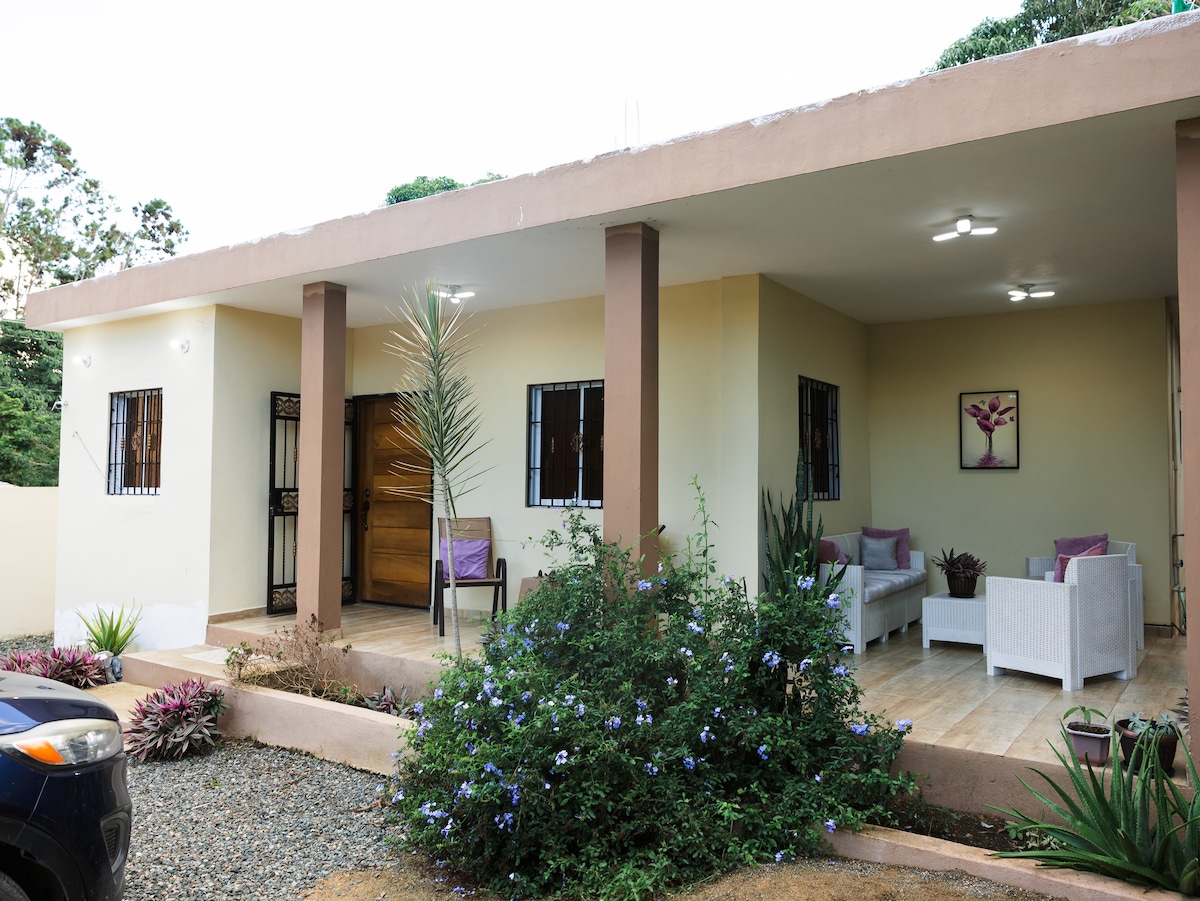 We have created a cozy, comfortable space to relax to the max! Come enjoy the fresh air in this private casita in the clouds. Escape the Covid craziness and work/ study from the comfort of the large covered balcony! Soak up the sun in the garden and enjoy the cool mountain breeze. Located next to Monte Bonito, a perfect home base to hike the country roads, lounge on the ample balcony and enjoy the fresh air and sounds of nature. The cottage is a 15 minute drive into the mountains of Jarabacoa.