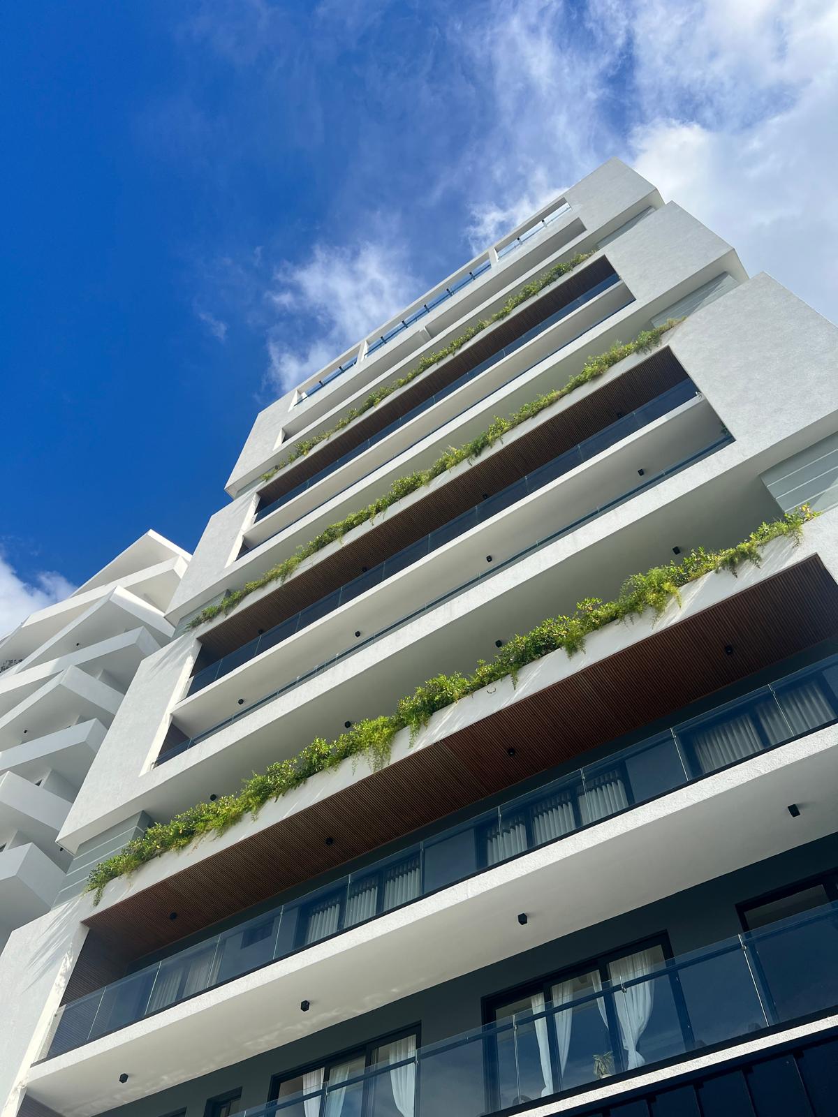 Moderno apartamento de dos habitaciones totalmente climatizadas, con aires acondicionados en cada dormitorio y en la sala. Dispone de wifi rápido, Smart TV en la sala y en la habitación principal. Con hermosa y conservadora decoración. El complejo ofrece área social de primera: piscina con vista al Monumento, salas de estar, mesa de ping pong, minibar, gimnasio, sauna y área infantil ideal para los más pequeños.