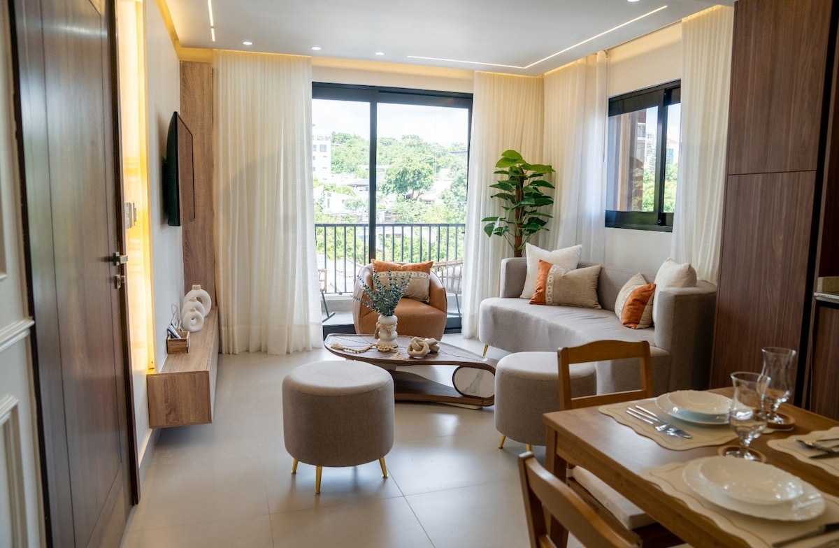 *Serene Retreat with Stunning Views* Relax in our elegant 2-bedroom, 2-bathroom apartment in a quiet residential building. Enjoy breathtaking views from your private deck. Steps from AGORA SANTIAGO MALL, Medical Union Clinic, and National Central and Bravo Supermaket (2-min walk). *Amenities:* - 2 spacious bedrooms - 2 bathrooms - Private deck - In-unit washer & dryer - Free gated private parking *Book Now:* Perfect for business or leisure, experience comfort and style!
