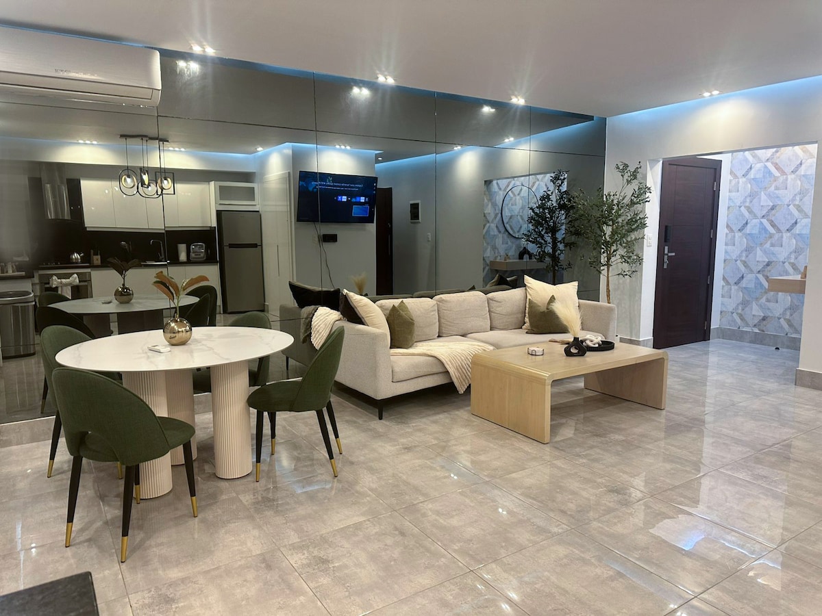 This is a beautiful exclusive suite on the 12th level of the tower with a panoramic view. The concept is modern and luxury . Led iluminated ceilings. Air conditioning in both the living room and bedroom offer a pleasant climate. A very comfortable bed for a good night sleep . 50 -Inch TVwith NETFLIX,WiFi,cable and other amenities are included. Located in one of the most prestigious and secure areas .Whether it’s a business trip or a relaxation vacation, this will be the perfect getaway.