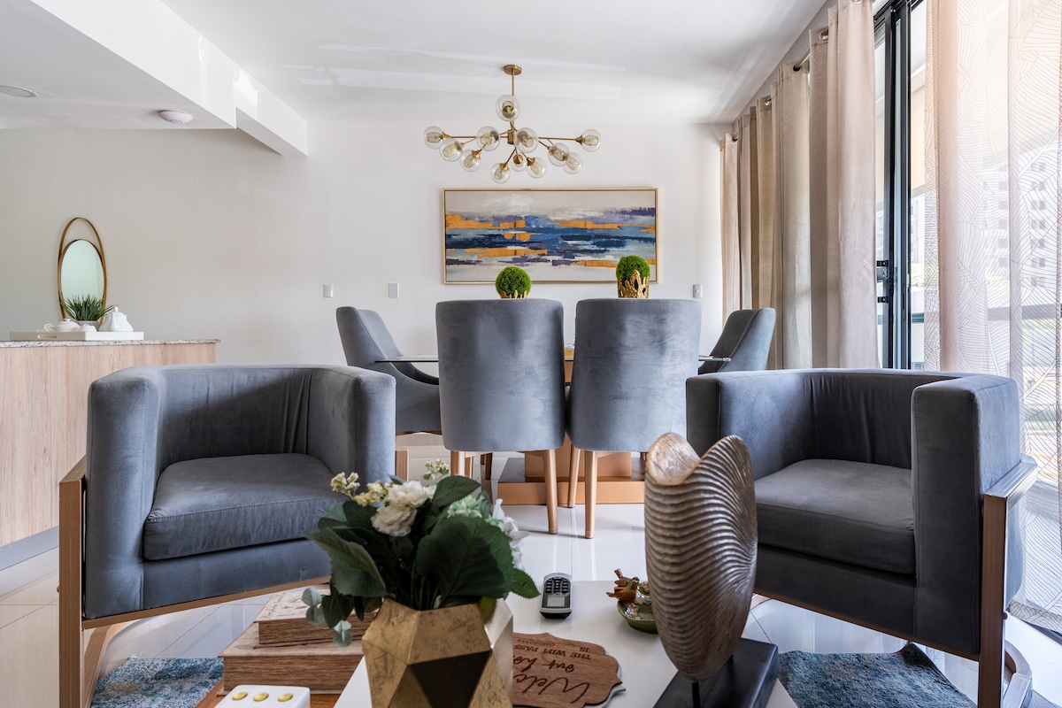This is a beautiful exclusive suite on the 12th level of the tower with a panoramic view. The concept is modern and luxury . Led iluminated ceilings. Air conditioning in both the living room and bedroom offer a pleasant climate. A very comfortable bed for a good night sleep . 50 -Inch TVwith NETFLIX,WiFi,cable and other amenities are included. Located in one of the most prestigious and secure areas .Whether it’s a business trip or a relaxation vacation, this will be the perfect getaway.
