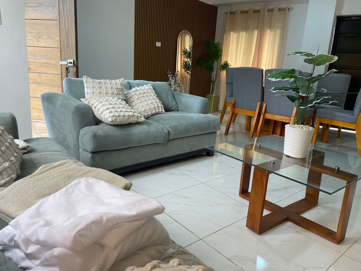 Relájate en este espacio tan tranquilo y elegante. Disfruta de acceso a las aguas del Río Yaque del Norte, podrás escuchar el relajante sonido de su cauce y una vista panorámica a las montañas del municipio de la eterna primavera Jarabacoa, tanto por la parte delantera del alojamiento como por la parte trasera con vista al río desde sus habitaciones. Espacioso y acogedor apartamento con todas las comodidades y espacios para suplir tus necesidades.