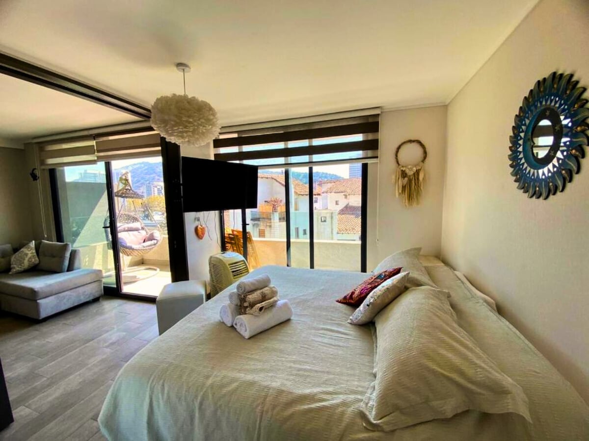 Único y encantador. Cama King, AC/calefacción, terraza, TV 360°, WIFI, estacionamiento gratuito. Quinchos con vista panorámica, sala de pool, co-work, piscina al aire libre (sólo en temporada) y más. ¡Ubicación fantástica! Para los amantes de la nieve, arriendo de equipos, buses de acercamiento y tours a menos de 400mts. Cuenta con entrada a autopistas, locomoción colectiva, supermercados, restaurantes, bencineras, farmacia 24 hrs, parques y malls.