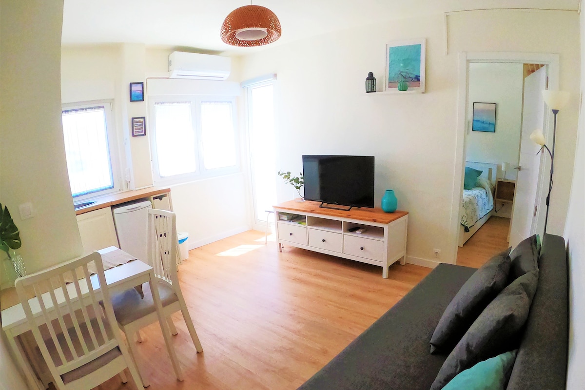 Disfruta del surf en Somo en nuestro Surf Shack, para 2 personas El apartamento esta a 50 metros de la playa de Somo. Dispone de terraza donde guardar las tablas de surf y secar los trajes de neopreno. Estetica de Surf Shack como en los bungalows de Hawaii y California. Tiene WIFI con fibra, calefacción y Smart TV. Dispone de una mesa para trabajar. Desconecta de la rutina en este alojamiento único y relajante.