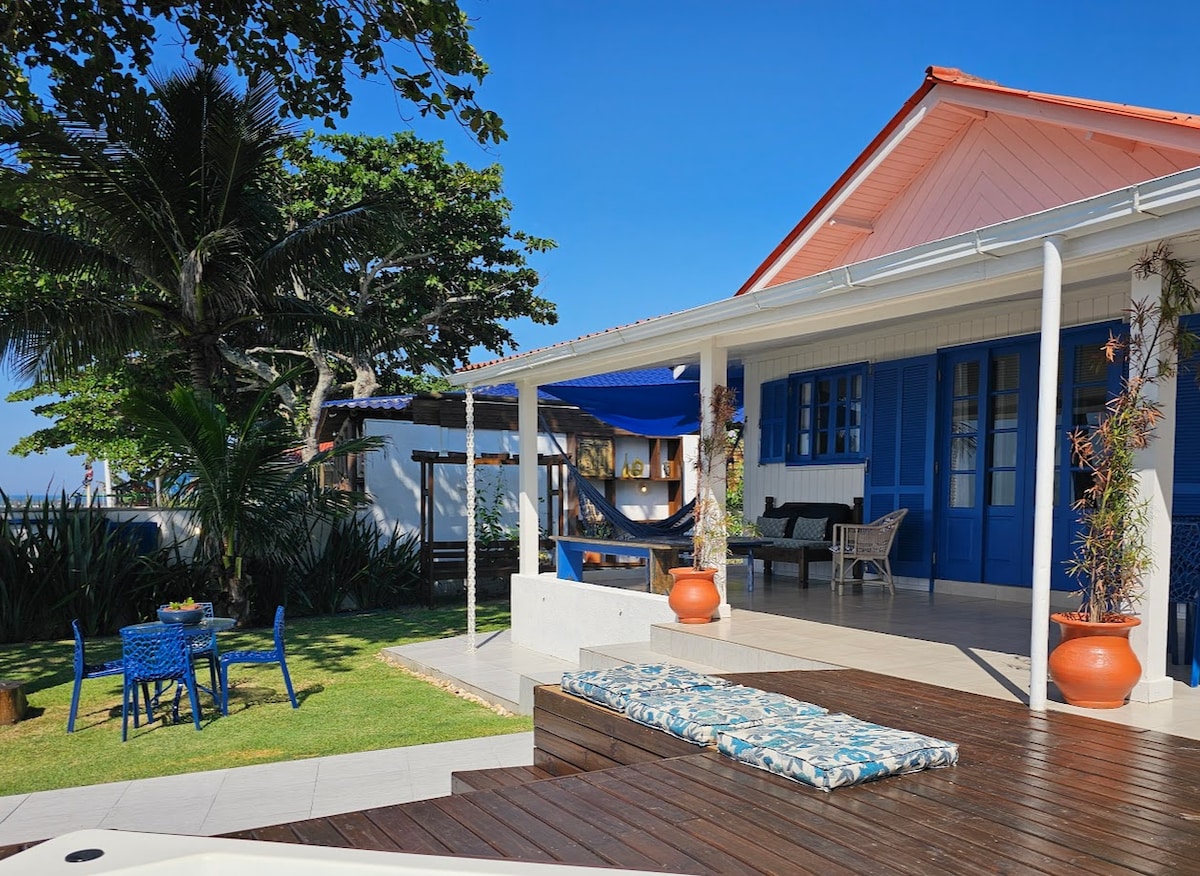 O chalé é totalmente equipado para uma estadia confortável e inesquecível: Quarto • Quarto aconchegante com sacada e vista para o pôr do sol Sala • Sofá confortável para relaxar depois da praia • Smart TV • Ar-condicionado Cozinha completa • Utensílios para preparar refeições completas Banheiro • Chuveiro com aquecimento a gás Relaxamento • Banheira de hidromassagem para momentos de descanso a dois À noite, o clima é silencioso com céu estrelado e a brisa suave vinda do mar.