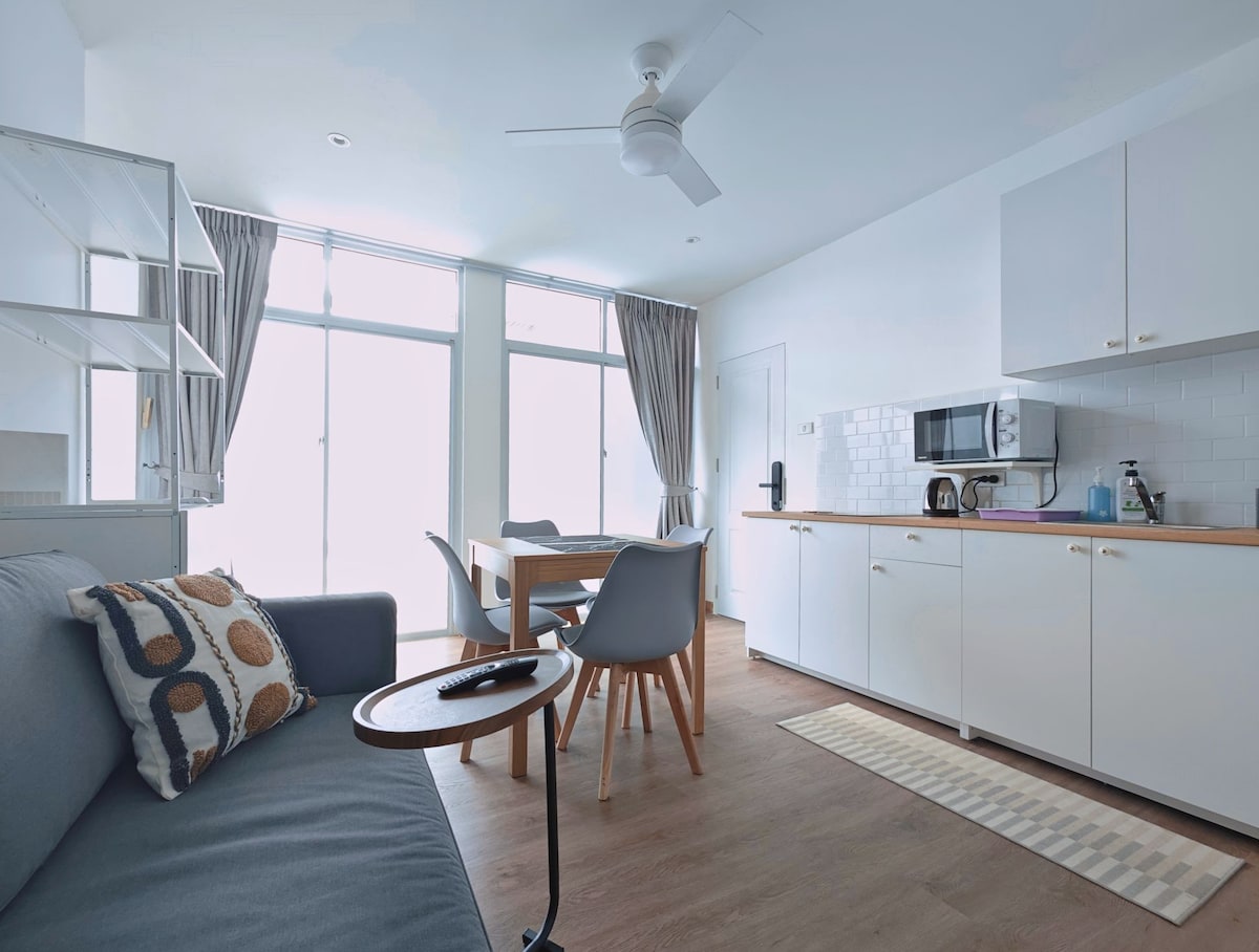 单间公寓,全功能厨房-3分钟到Phrakhanong轻轨站
