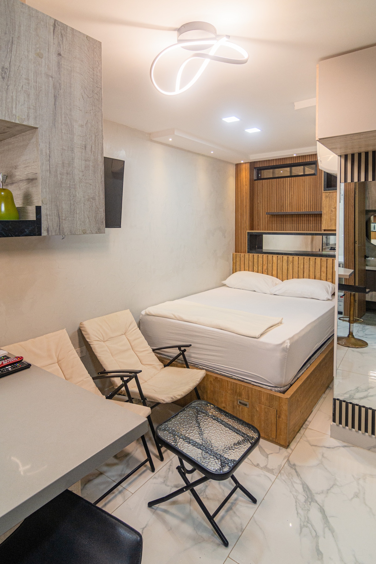 Disfruta de un loft moderno en Cabecera del Llano, perfecto para relajarte y descansar, ideal para parejas. Cama King con TV 55” frente a la cama, ventanales piso-techo con blackout, sala con hamaca y comedor, cocina equipada, A/C, Wi-Fi con respaldo y planta de energía. Zona de trabajo con mesa y silla ergonómica. Ingreso autónomo con códigos y ascensor. Minimarket 24/7 en el piso 1. Rodeado de parques, cafés, restaurantes y centros comerciales. ¡Comodidad, estilo y ubicación en un solo lugar!