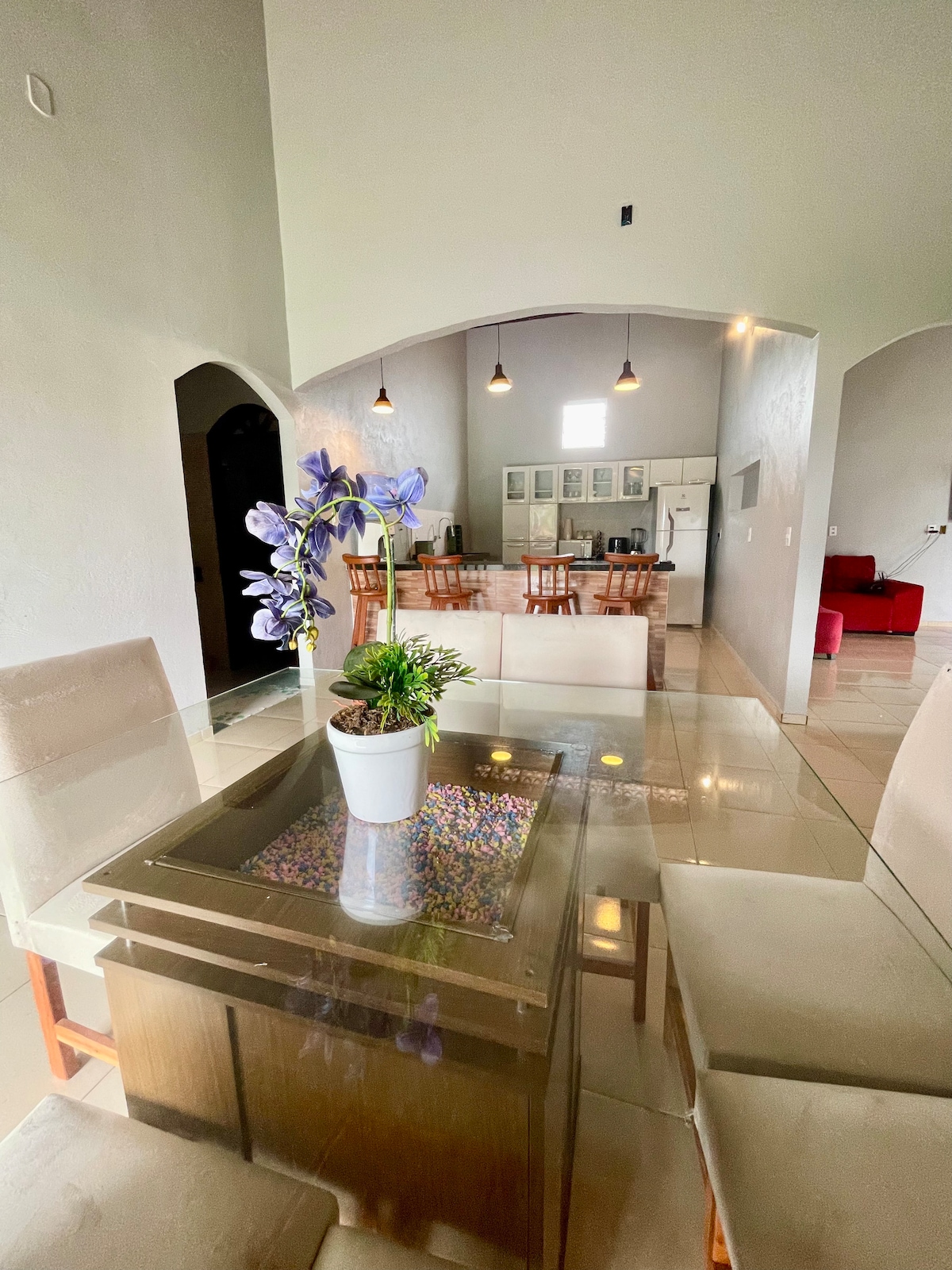Descubra a Casa Biana, um refúgio em Barreirinhas, dentro do melhor condomínio fechado com acesso ao rio Preguiça. São 4 suítes , 6 banheiros, cozinha completa, piscina, churrasqueira, TV em todos ambientes e sala climatizada. Oferece o cenário perfeito para momentos felizes em família ou com amigos. Inclui berço portátil e cadeira de alimentação. Próxima a uma praia privativa e a 7 min do centro, nossa casa é a base ideal para explorar os encantos locais e os Lençóis Maranhenses. Viva a magia!