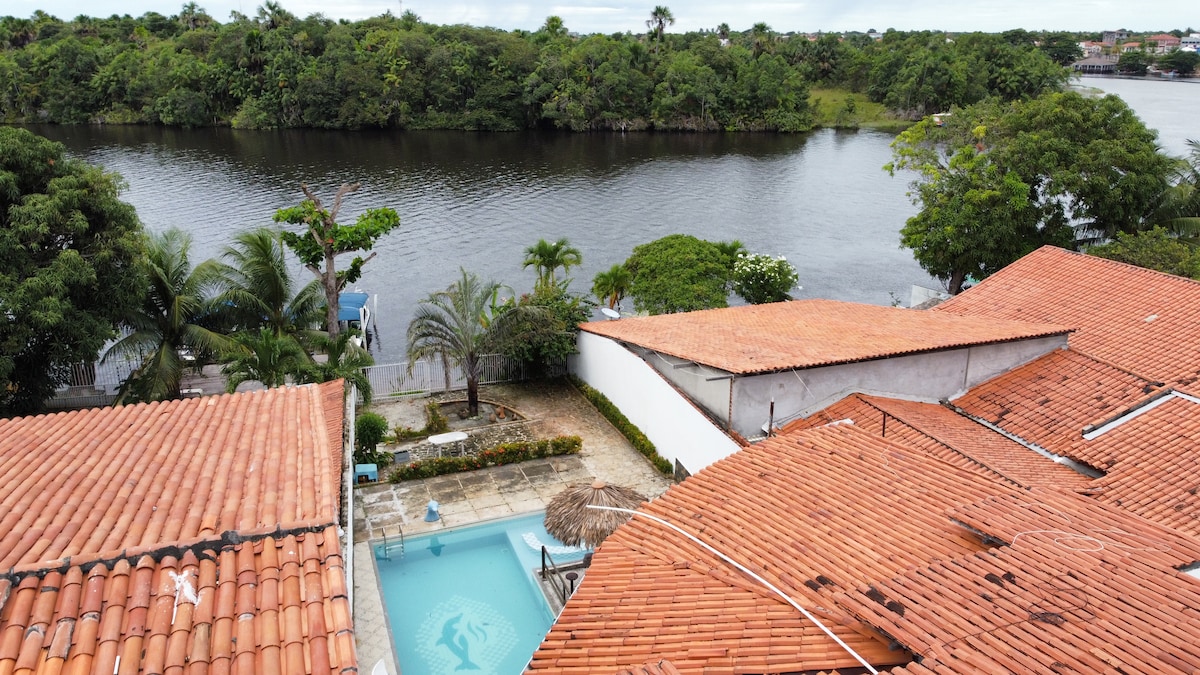 Casa em condomínio com piscina na beira do rio