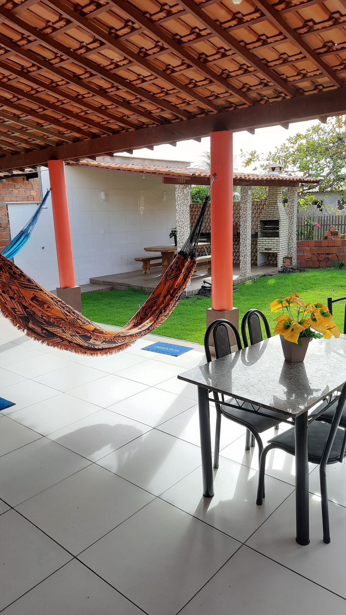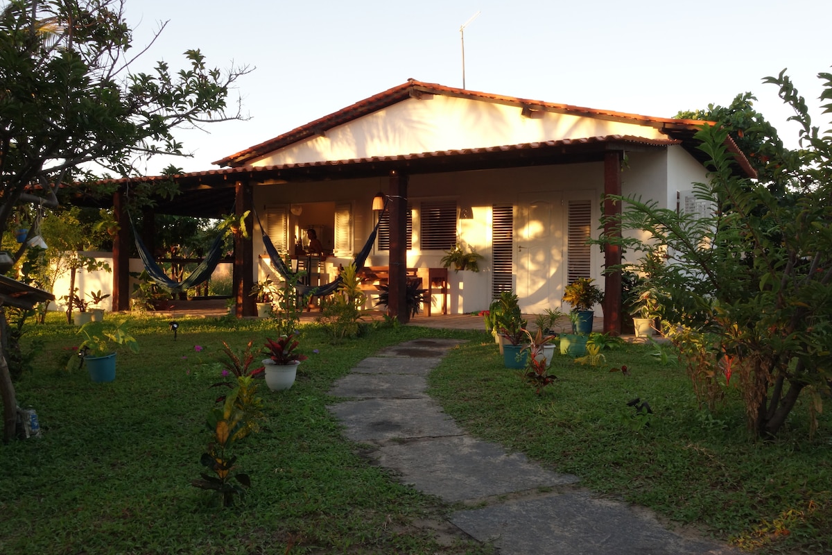 Casa próximo ao rio, ao centro de cidade e as dunas. 3 Quartos todos com ar condicionados; TV Chuveiro eletrico. Garagem. Cozinha completa (panelas, ´panela air fryer, cafeteira, pratos, talheres, fogão, geladeira, tc). Casa com acesso com rua de calçamento, Varanda em "L", armadores de rede em todos os cômodos. Churrasqueira. Área de convivência aconchegante. Oferecemos: Estacionamento gratuito. Roupa de cama e banho. Wifi Próximo: Centro da cidade, dunas, padaria, mercearia.