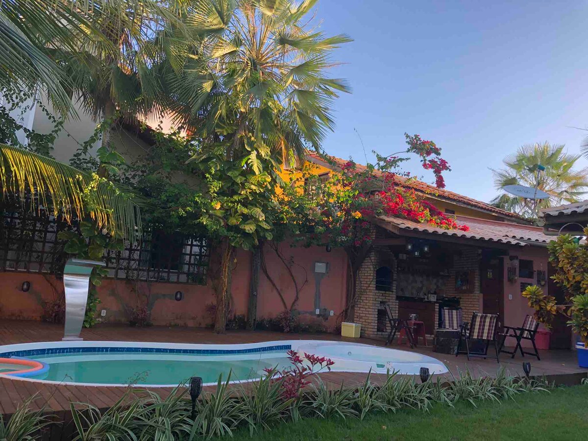 Casa Aconchegante, localizada dentro do Condomínio Dunas Park, 4 suítes: 2 com banheiro reversível e varandas, enxoval de cama e banho completo, todas com ar-condicionado, chuveiros elétricos, armários e armador de rede.Cozinha completa: fogão com forno, air fryer, liquidificador, conjunto panelas, bebedouro de água, churrasqueira, armários de cozinha e ampla mesa de jantar. Sala de estar: conjunto de sofá com TV.Área de lazer:com piscina privativa, cadeiras de sol, chuveiro e armadores de rede.
