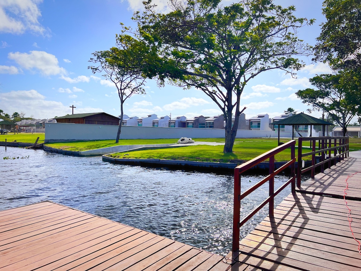 Condomínio às margens do Rio Preguiças em frente à ponte que leva aos Lençóis Maranhenses. Desfrute de um píer exclusivo, perfeito para relaxar ao pôr do sol, com bancos, estrutura para lanchas e espaço para jetskis. Próximo a tudo: bancos, mercados, farmácias, lanchonetes, apenas 2 minutos da Beira Rio, onde a cidade ganha vida. O apartamento é amplo, bem ventilado, iluminado e oferece segurança, privacidade e tranquilidade. ✔️ Portaria 24h para sua total segurança e comodidade