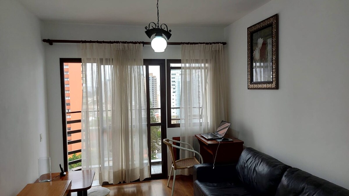 Confy design Spa apartment. You'll have your onw private sauna and ofurô with an incredible view of the São Paulo DownTown Dedicated exclusively for guests. Área privativa de 82m2 e se localiza em um edifício de construção nova, da construtora Cyrela, com acabamento em alto padrão, com segurança e portaria 24h. Há apenas 50 metros de distância há um supermercado que funciona 24h por dia, de domingo à domingo. O metrô fica na esquina, há apenas 100 metros do edifício.