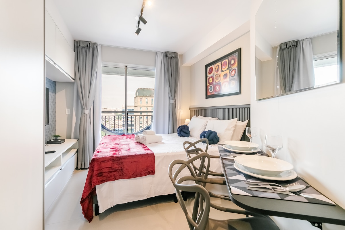 This stylish 50m2 apt. located at Bela Vista, has 24hr doorman. 2 bedrooms (only 1 with AC, and queen bed, the second one is quite small and can be used as an office, fitting a double-sized sofa-bed) and 1 bathroom. With amazing views from every window, it is a great place to work and relax. The private jet tube at the balcony is a fantastic spot to enjoy the city views. Parking - cable/smart tv, fridge with ice maker, oven, wash&dryer, cooktop, microwave, dishwasher and ultra fast internet.