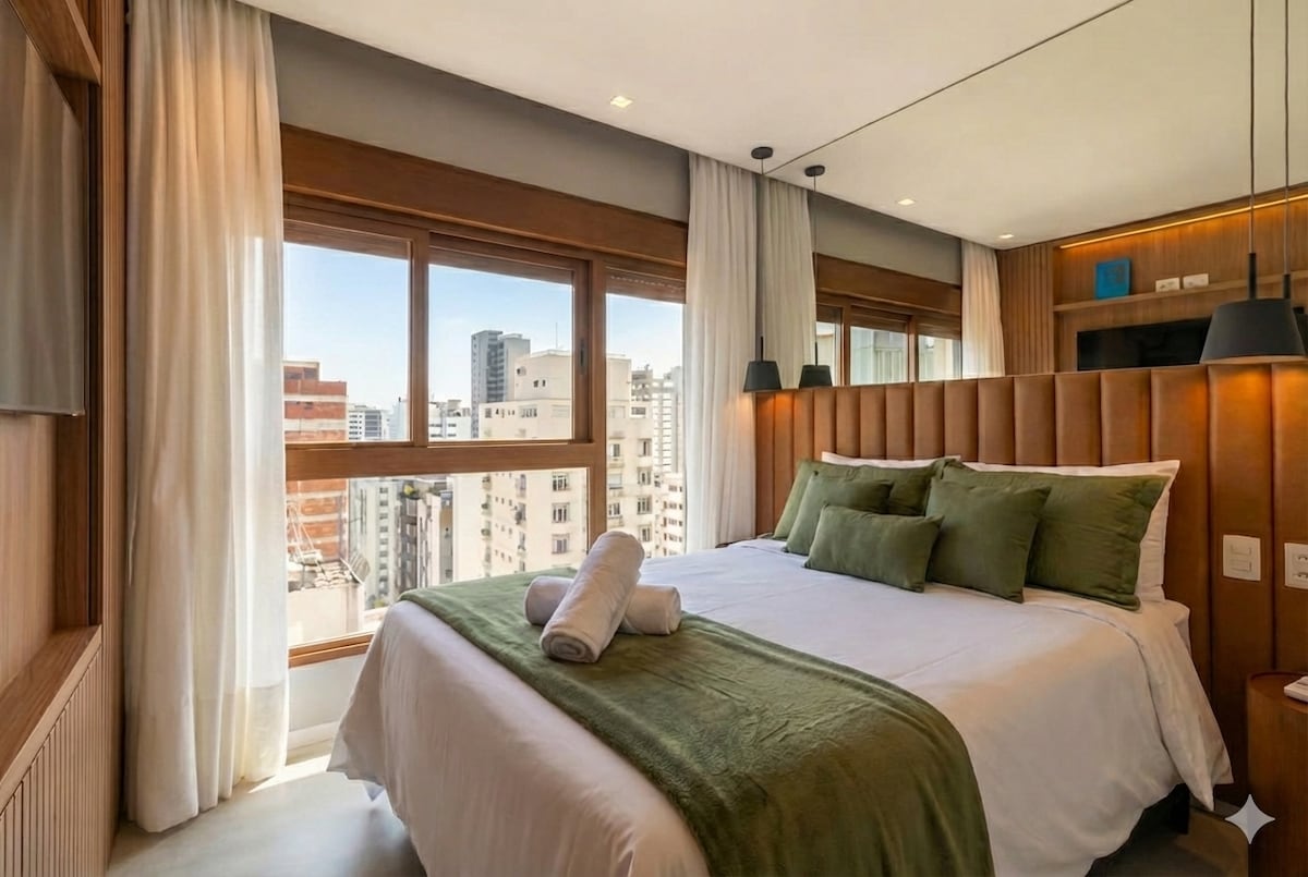 Estúdio Novo com Vista Panorâmica — 24º Andar com Piscina Infinita e Estilo! Desfrute de São Paulo com conforto e estilo em nosso estúdio montado com carinho para recebê-lo. Localizado no 24º andar com *vista envidraçada de 180° para a Marginal Pinheiros*. Um refúgio moderno, ideal para quem busca praticidade, comodidade e uma experiência diferenciada na cidade.