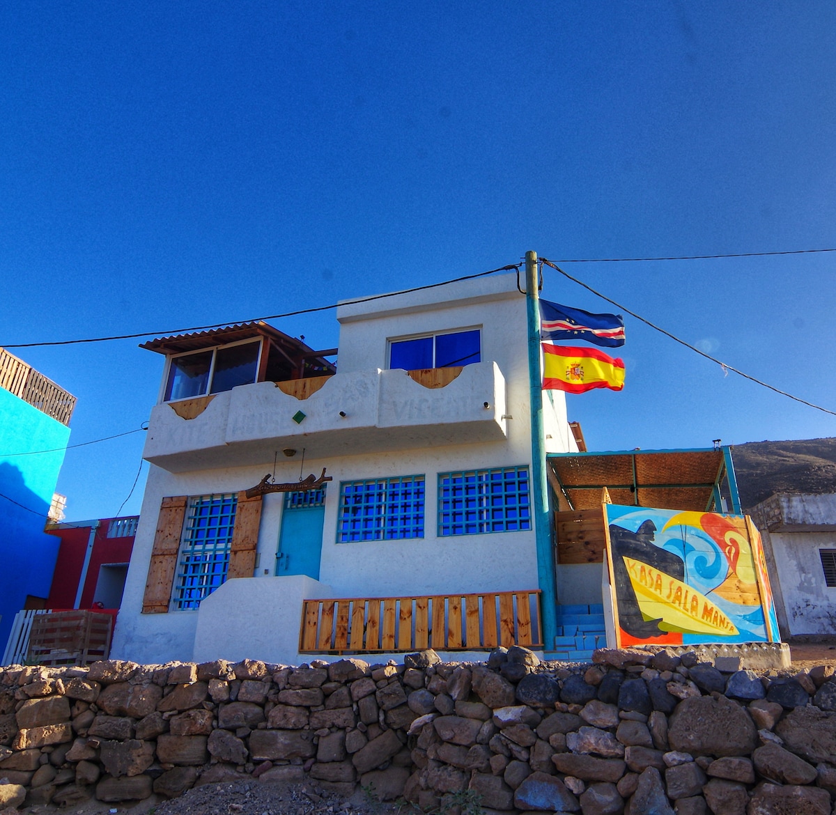 Es la solución ideal para quienes buscan unas vacaciones de relax en Cabo Verde en estrecho contacto con el mar. Te despertarás con el sonido de las olas frente a la playa de Salamansa, y su pueblo pesquero del mismo nombre. El loft se encuentra en el segundo piso de la casa de cometas y es completamente independiente y privado para usted. Es un ambiente luminoso y confortable con una maravillosa vista al mar, un baño privado, una cocina y una sala de estar privada afuera en la hermosa terraza.