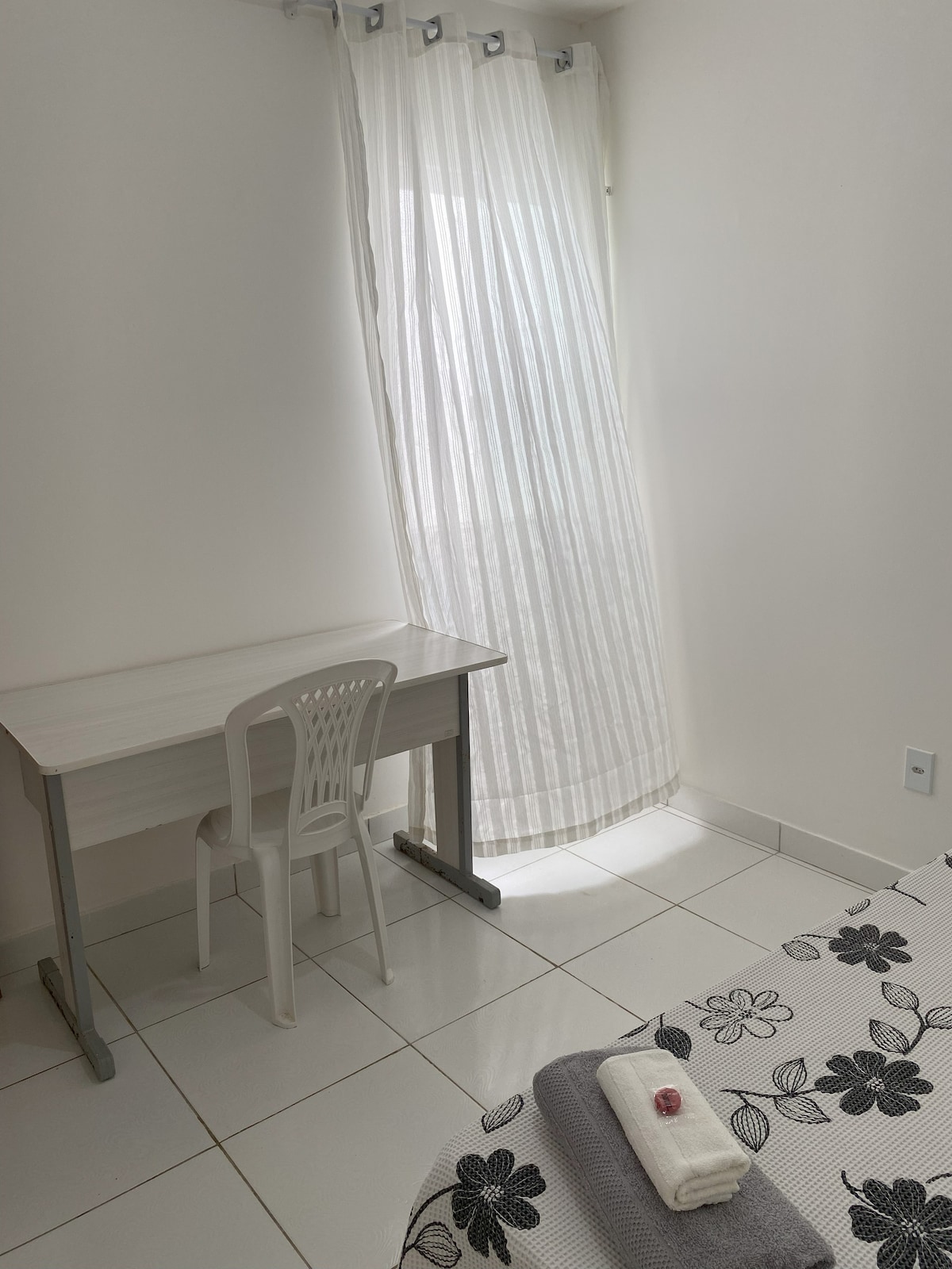 Experimente o estilo coliving em um quarto de solteiro com ventilador e espaço para trabalhar com conforto. Além da sua privacidade, compartilhe áreas comuns como cozinha, sala e varanda, criando conexões com outros hóspedes. Uma forma prática e econômica de se hospedar, unindo aconchego, interação e localização estratégica próxima ao Hospital Regional e à Rodoviária.
