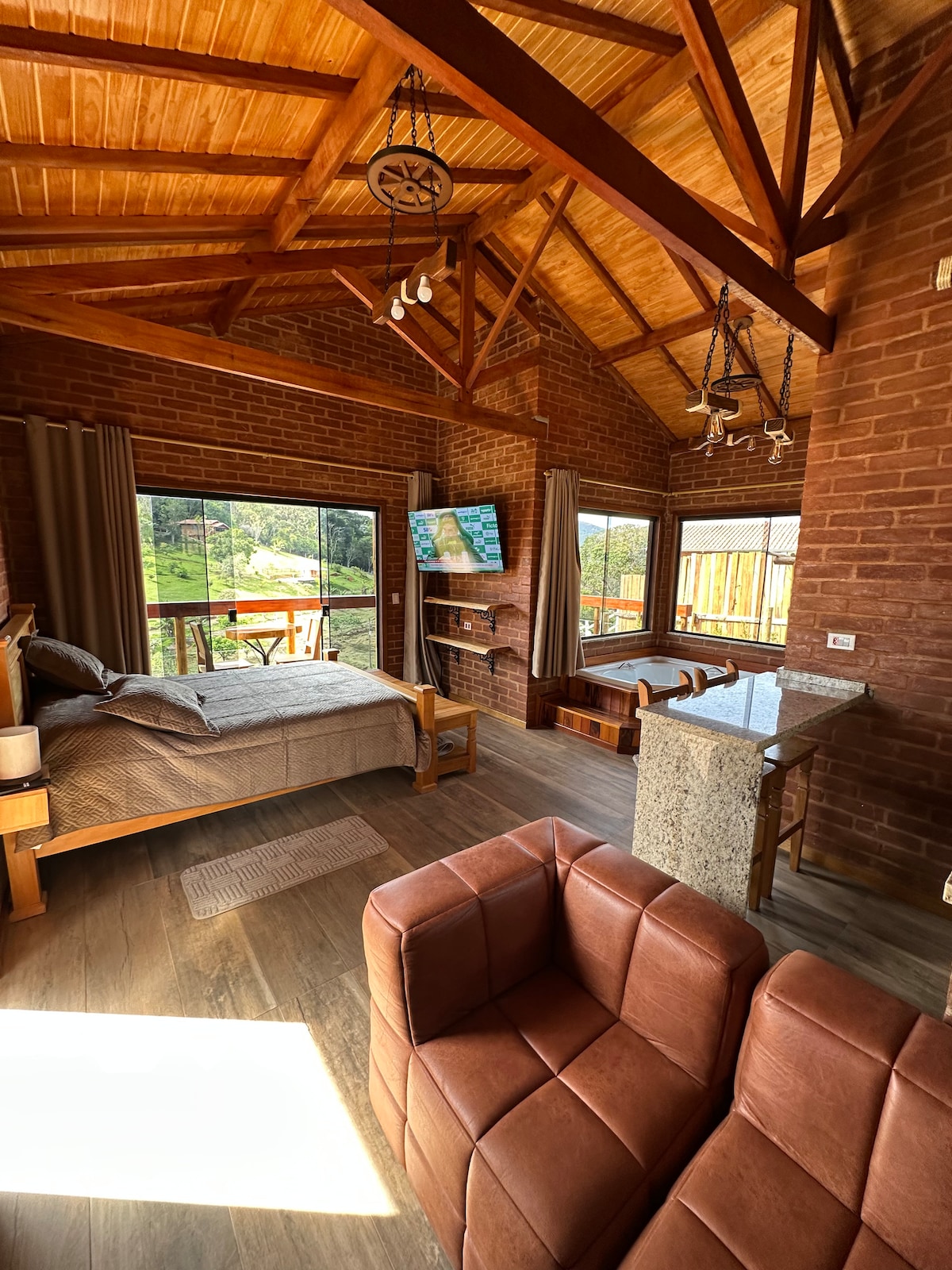 Descubra um refúgio onde o conforto encontra a natureza. Nosso chalé, cercado pelo verde e pelo silêncio da serra, é o cenário ideal para casais que valorizam experiências românticas e memoráveis. Relaxe na banheira de hidromassagem, aqueça-se junto à lareira nas noites frias e aproveite a piscina nos dias ensolarados. Cada detalhe foi cuidadosamente pensado para transformar sua estadia em algo único e inesquecível.