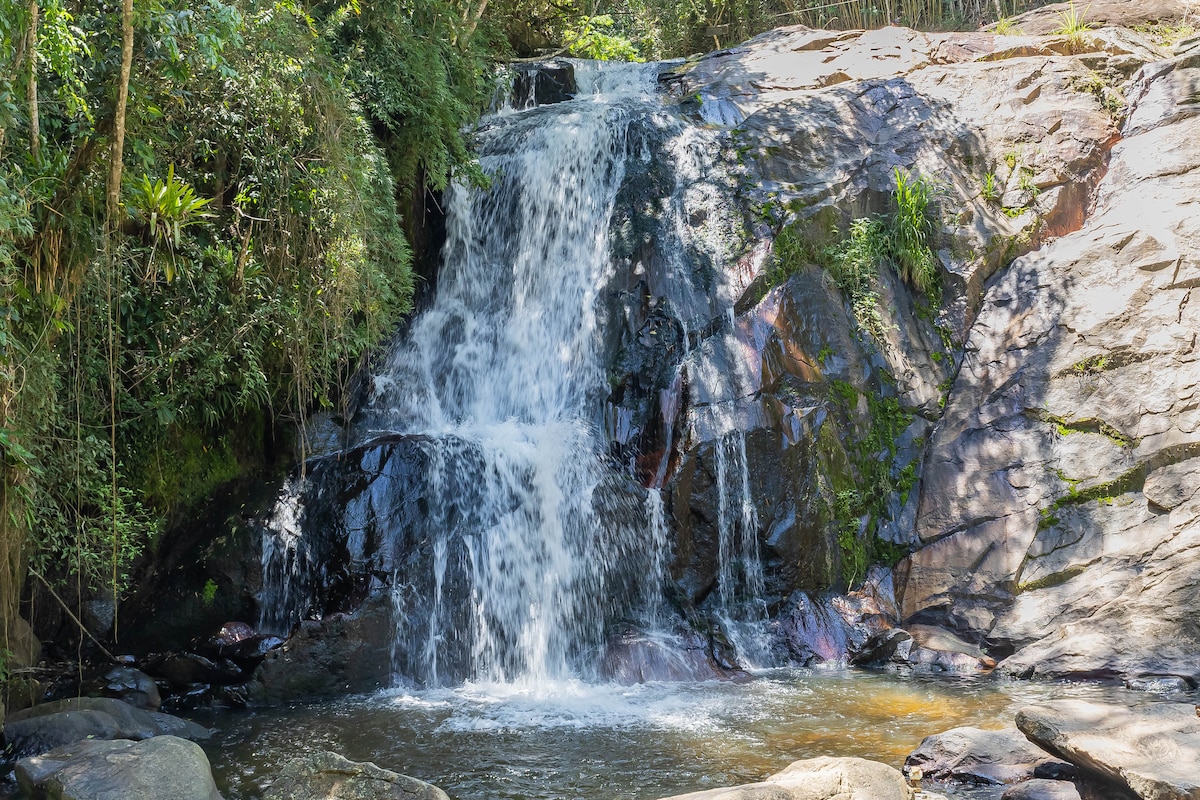 Experience the best of Mantiqueira: safety, comfort, and nature. Nestled in the heart of Mantiqueira's forest and situated in a private condominium, our corten steel house, with expansive windows, is distinguished by its local art and craftsmanship. It accommodates 10 guests, expanding to 24 with adjoining chalets. We provide Wi-Fi, spring water, daily cleaning, and a regional breakfast. Perfect for events, gatherings, and retreats. We offer services from masseurs, chefs, and exclusive tastings